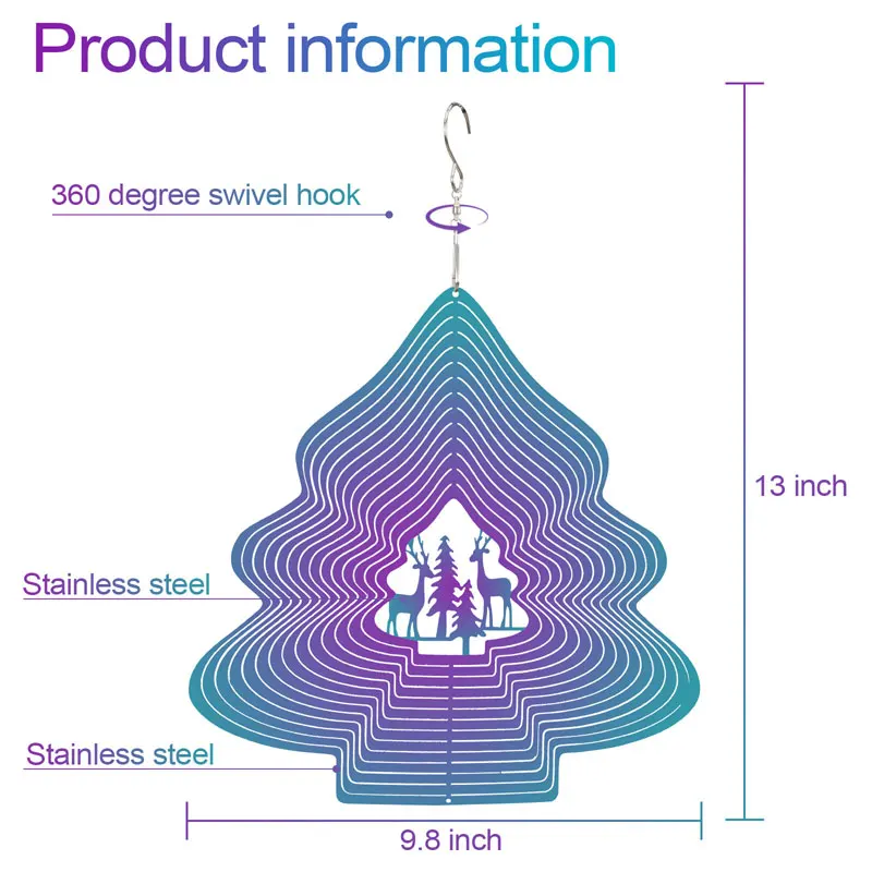 Tükör Rozsdamentes Acél 3D -S Forgó Szélű Fonó Fémfém Karácsonyfa És 25X31Cm Snowflae Szél Dekorációja