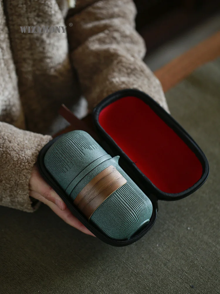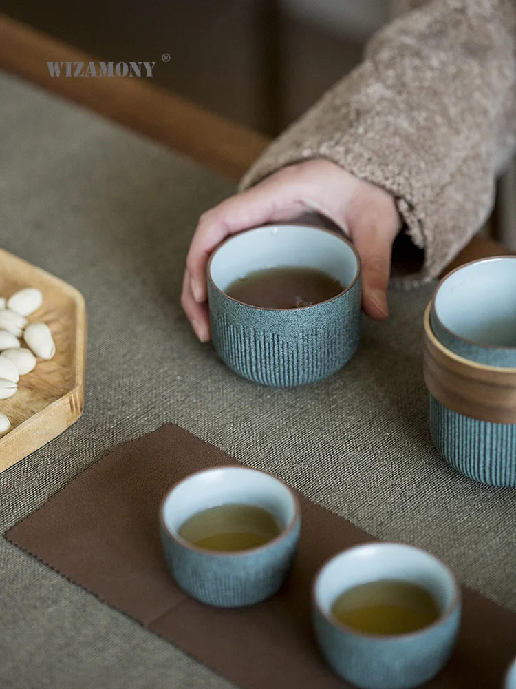 Türkiz Mázolt Csíkos Vágó Csésze Egy Edény Két Négy Kerámia Utazási Hordozható Teakészlet Szabadban