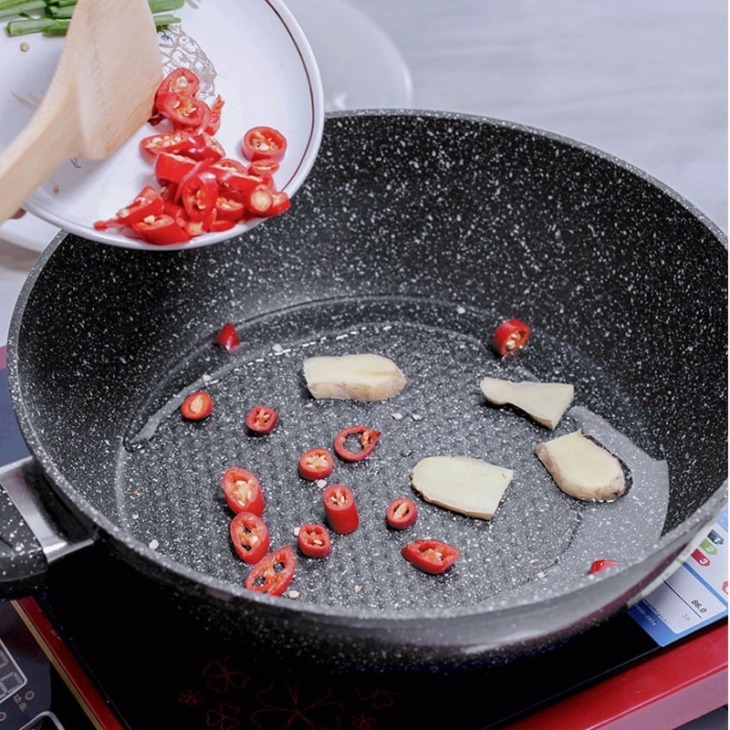 Új 20-28 Cm-Es Tapadás Nélküli Serpenyőben Lévő Orvosi Kőből Származó Séf Pánik Edényei Fedezetével/Anélkül, Hogy A Gáz-