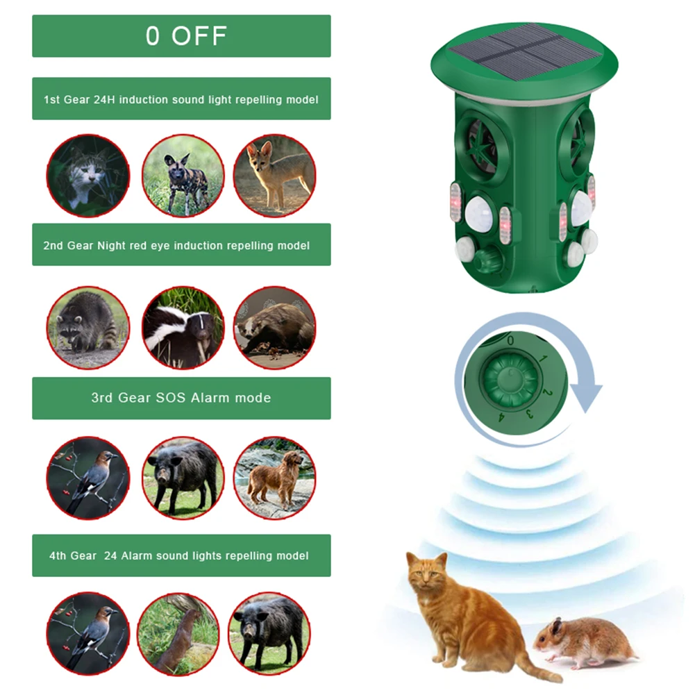Ultrahangos Napenergiával Működő Állati Visszatelepítő Vízálló Visszataszító Kültéri Kártevő Rágcsáló Gopher Elrettentő Vole Kígyó Üldöző