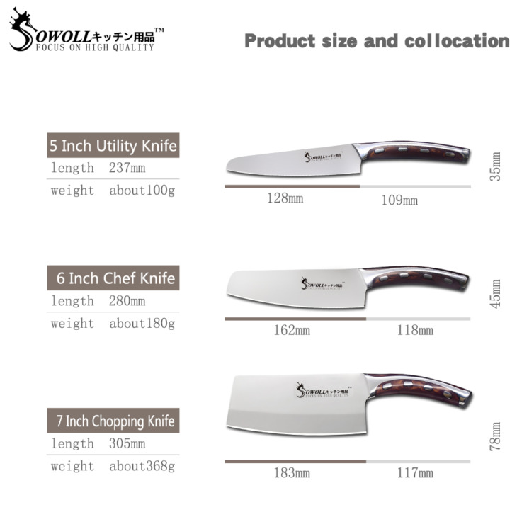 Usa Szállítás 3Pcs Konyhai Késkészlet Rozsdamentes Acél Hasító Darabolás Szeletelő Paring Kések Séf Késkészlet Evőeszközök Abs Fogantyú