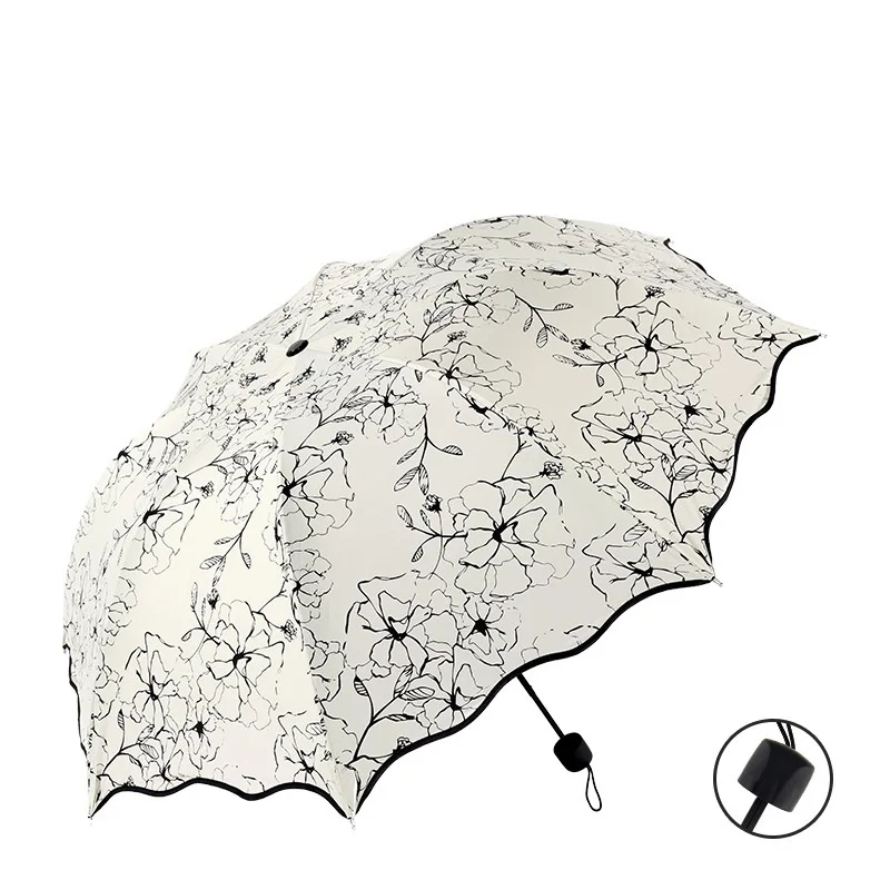 Uv-Ellenes, Összecsukható Esernyő Napsütéses Hölgyek Fényvédő Vinil Parasol Szélálló Ultra Könnyű Uv Védelem