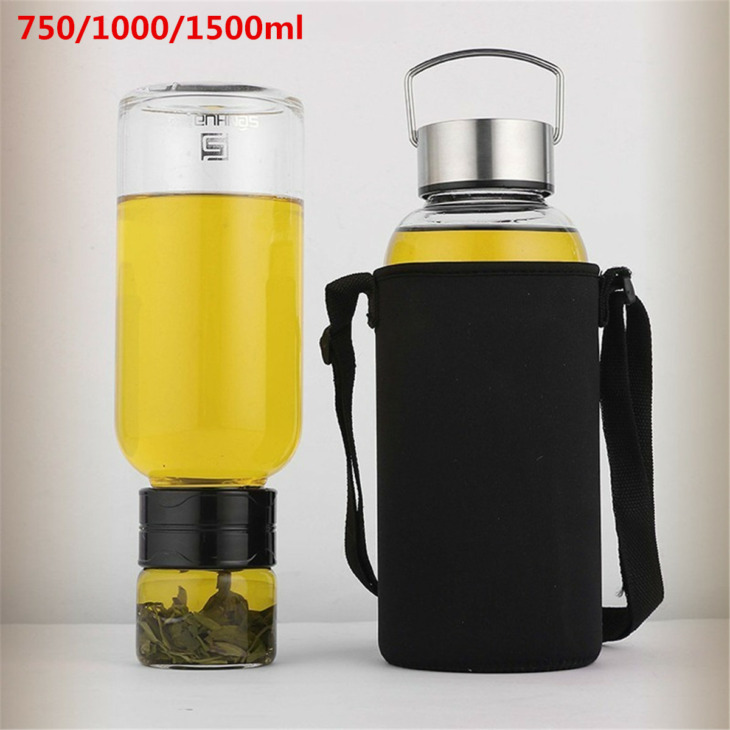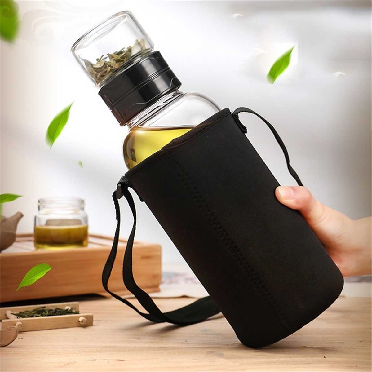 Üveg Tea Vizes Palack Táskával Tea Szűrő Elválasztó Infuser Tumbler Dupla Teás Palack Hordozható Italok Üveg Italok