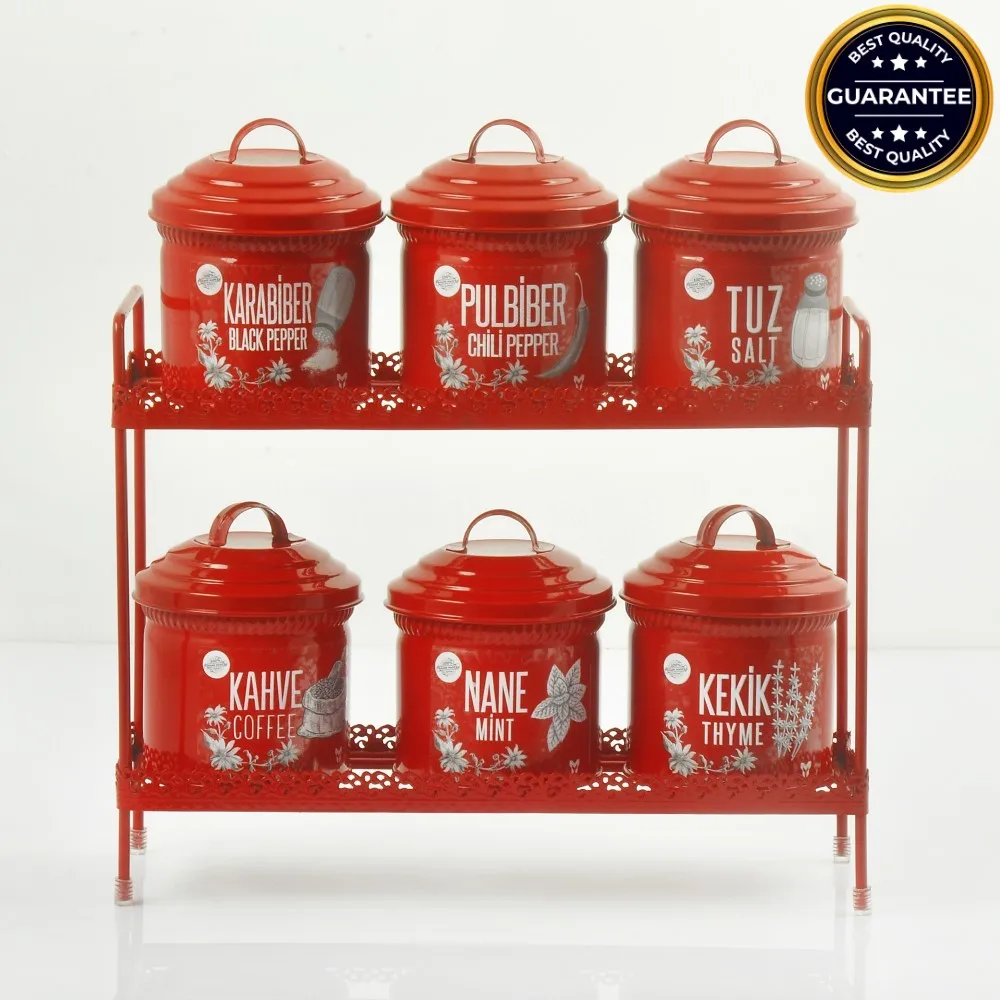 Üvegek Fűszeres Szervező Kovácsoltvas Állvány Vintage Konyhai Fűszeres Cukros Tál Otthoni Jar Szett Konténer Fedelekkel Sal