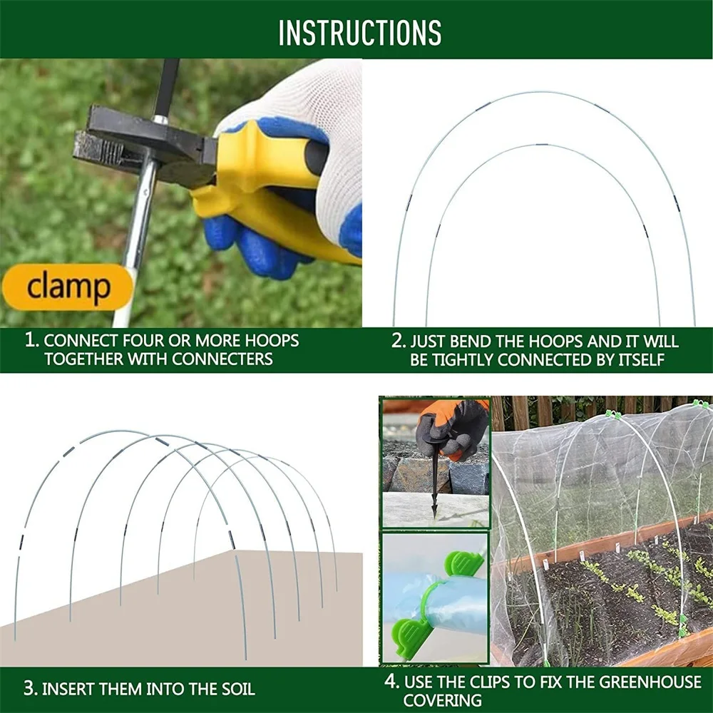 Üvegházhatású Karikák Termesztése Alagútkert Karika Készlet, Tüskék Klipek Levehető Üvegszálas Termesztési Alagút Keret Újrahasznosítható