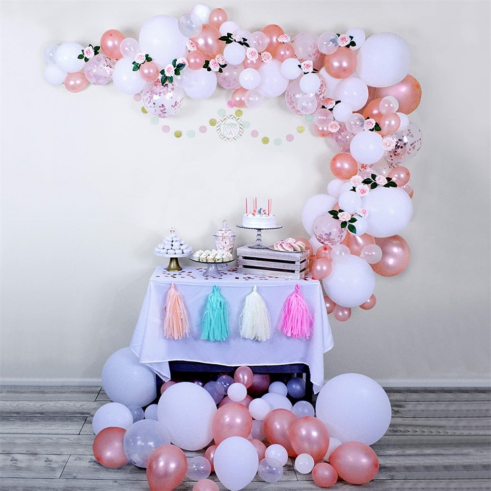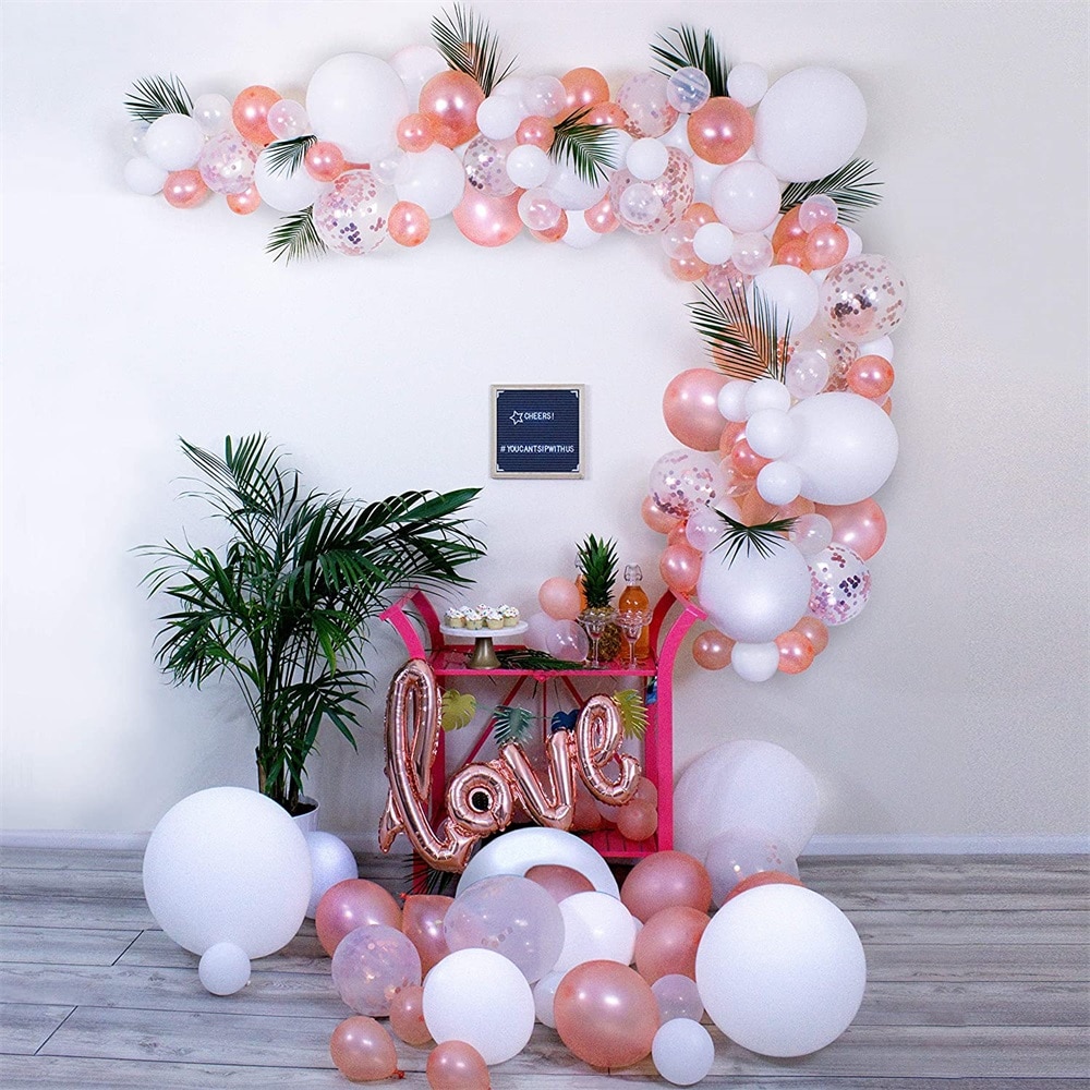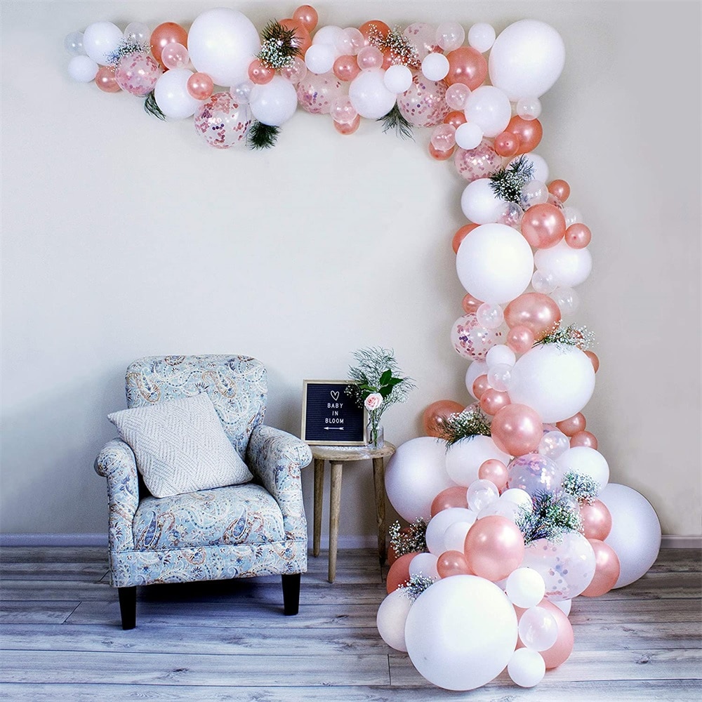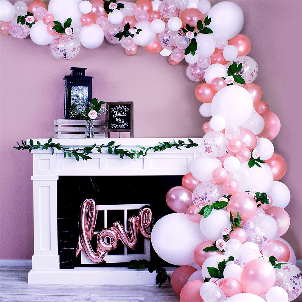 Valentin-Nap 100Db Rózsaarany Ballonív Garland Készlet, Fehér Átlátszó Latex Lufi Menyasszony Zuhanyzó Esküvői Dekorációk