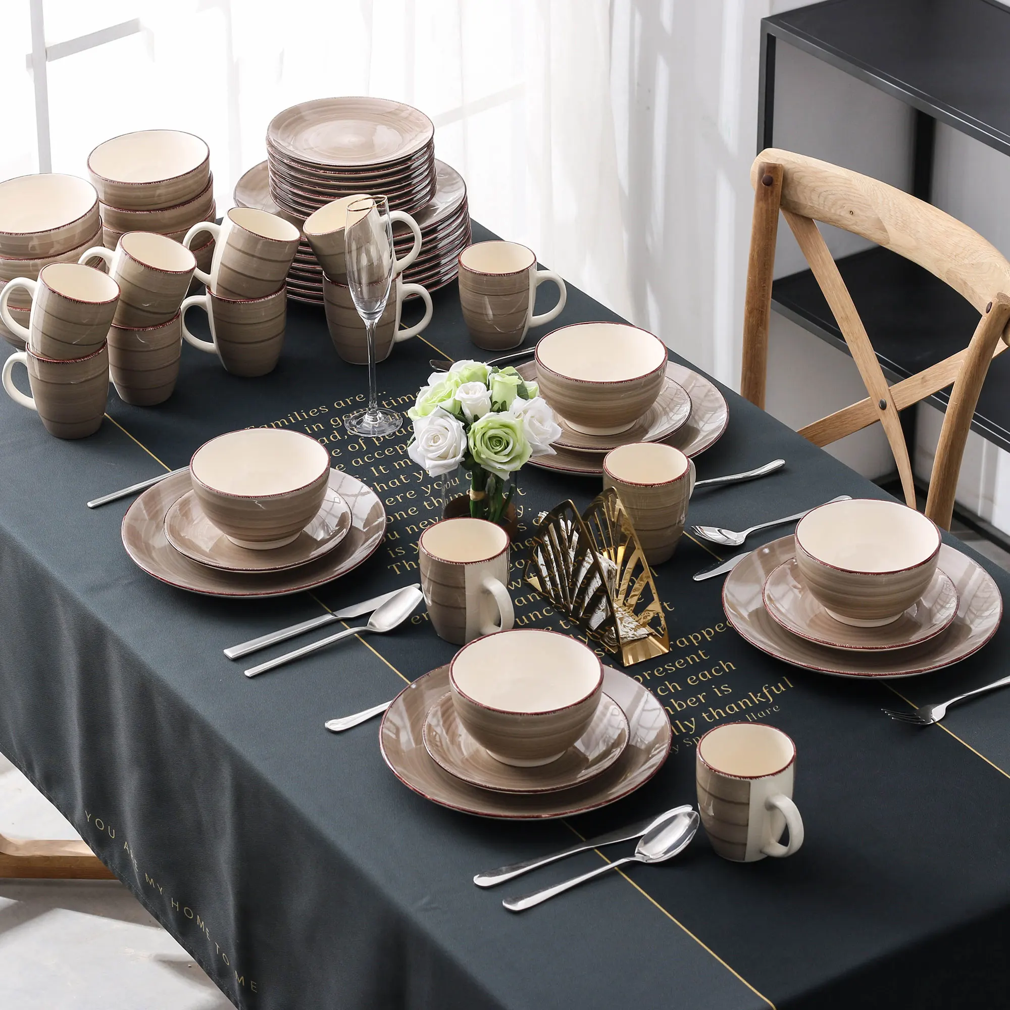 Vancasso Bella-C 48-Pieces Porcelán Vacsorakészlet Szüreti Megjelenés Kerámia Tányér 12*Vacsora Tányér, Desszert Tál, Bögre Készlet