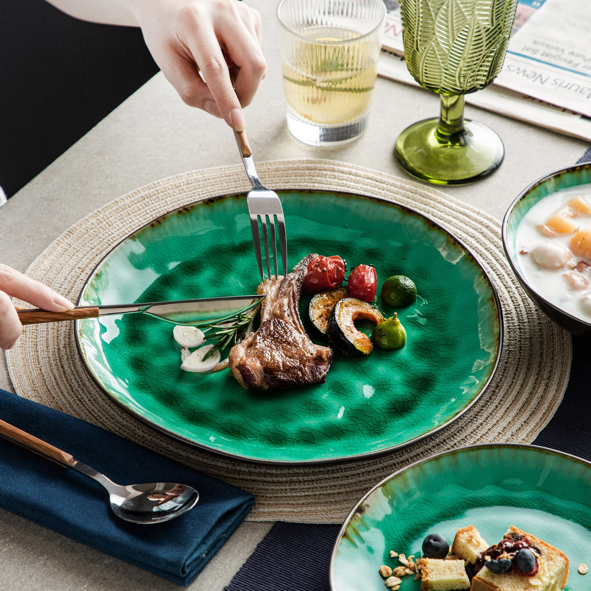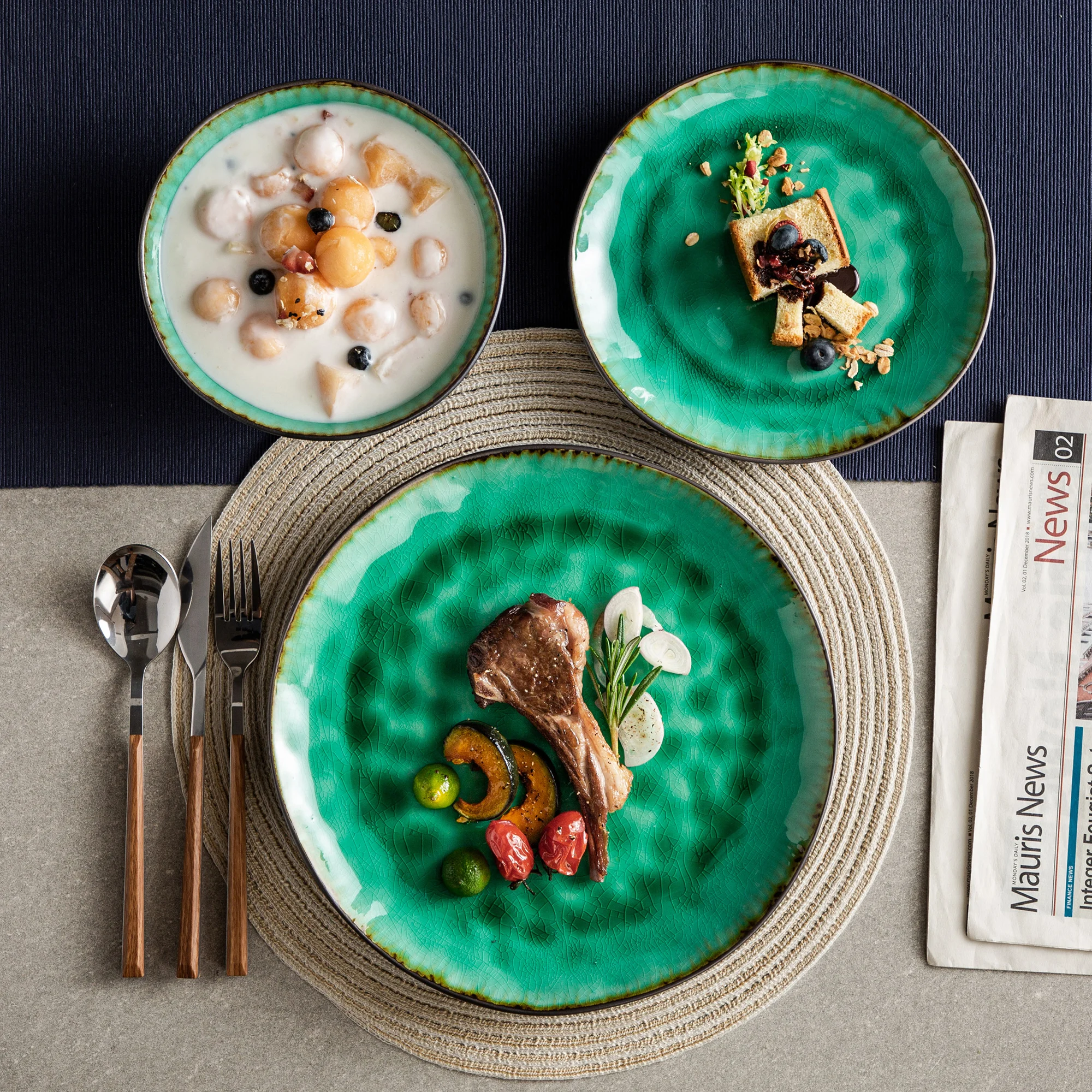 Vancasso Coco 12/24/36 Db Fazekaskő Vintage Kerámiazöld Étkészlet Vacsora Tányérnal, Desszert Tányér, Tál Asztali Edények