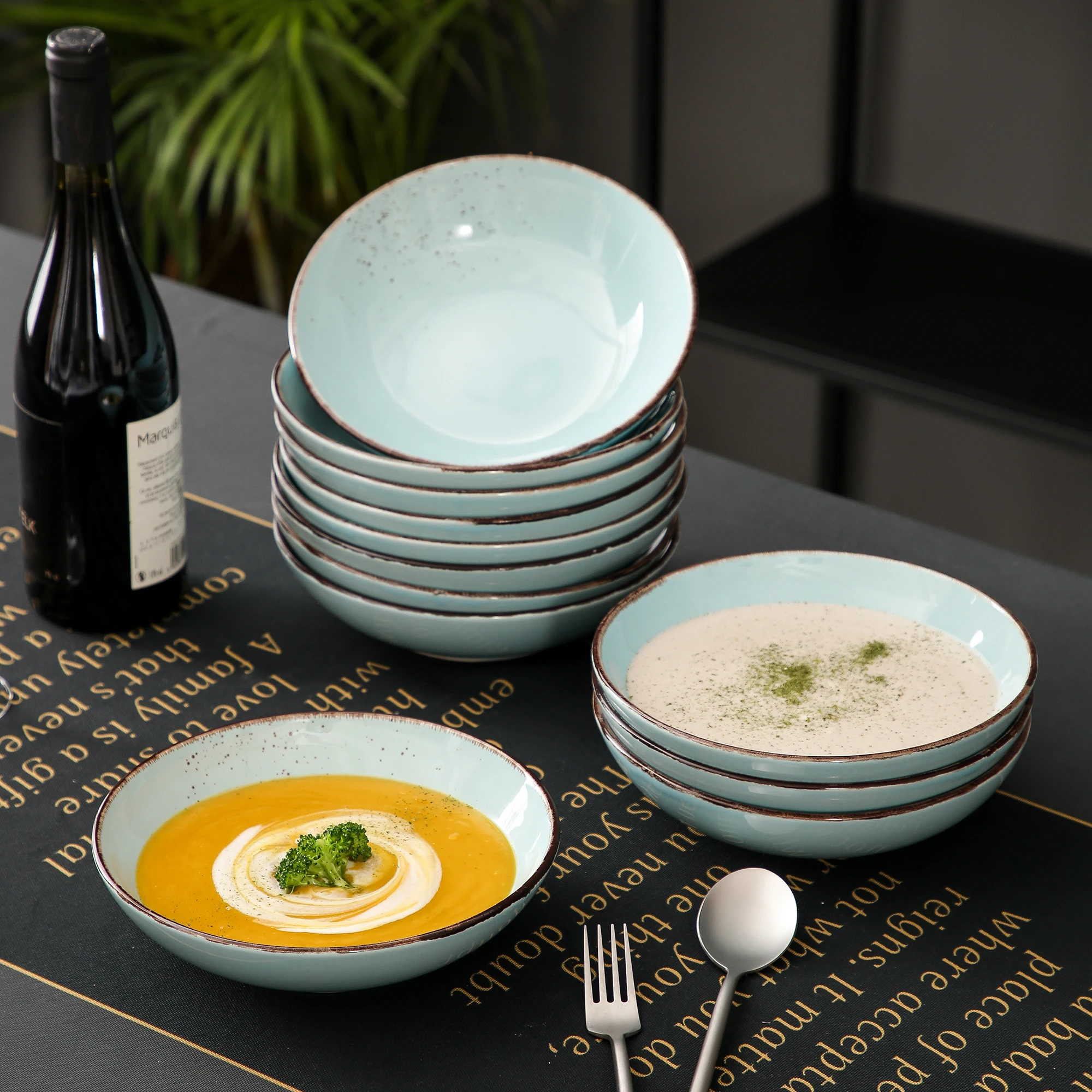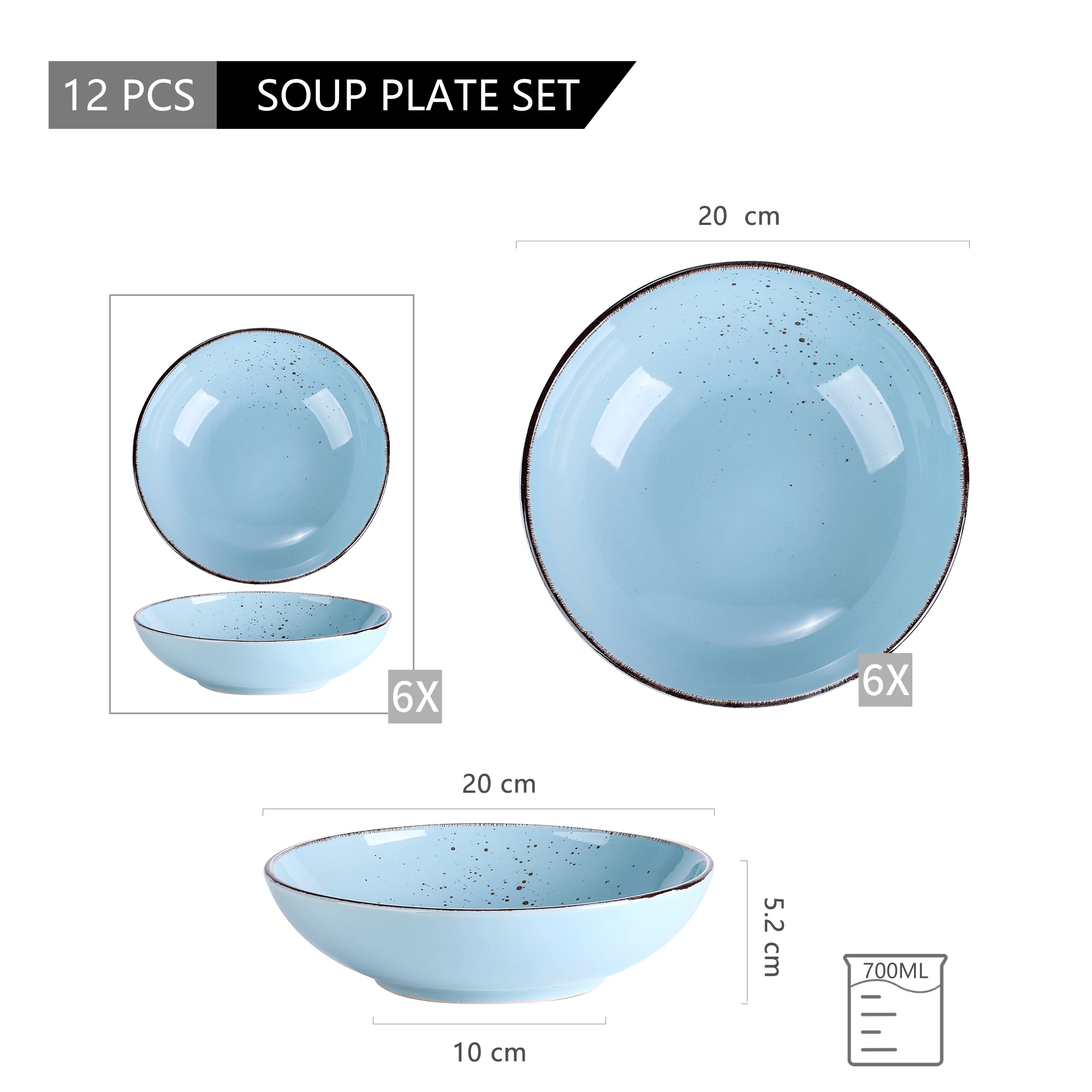 Vancasso Navia Oceano Blue 8.6 „Vintage Look Nature Stroneware Kerámia Leves Lemez Snack Gyümölcslemez (21,5*21,5*4,5 Cm)
