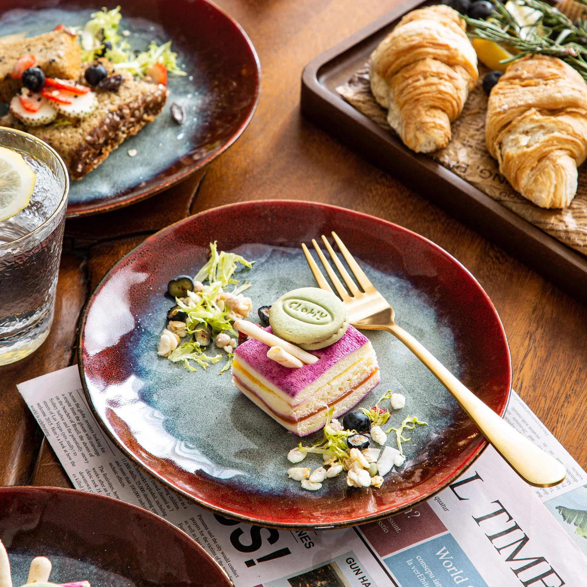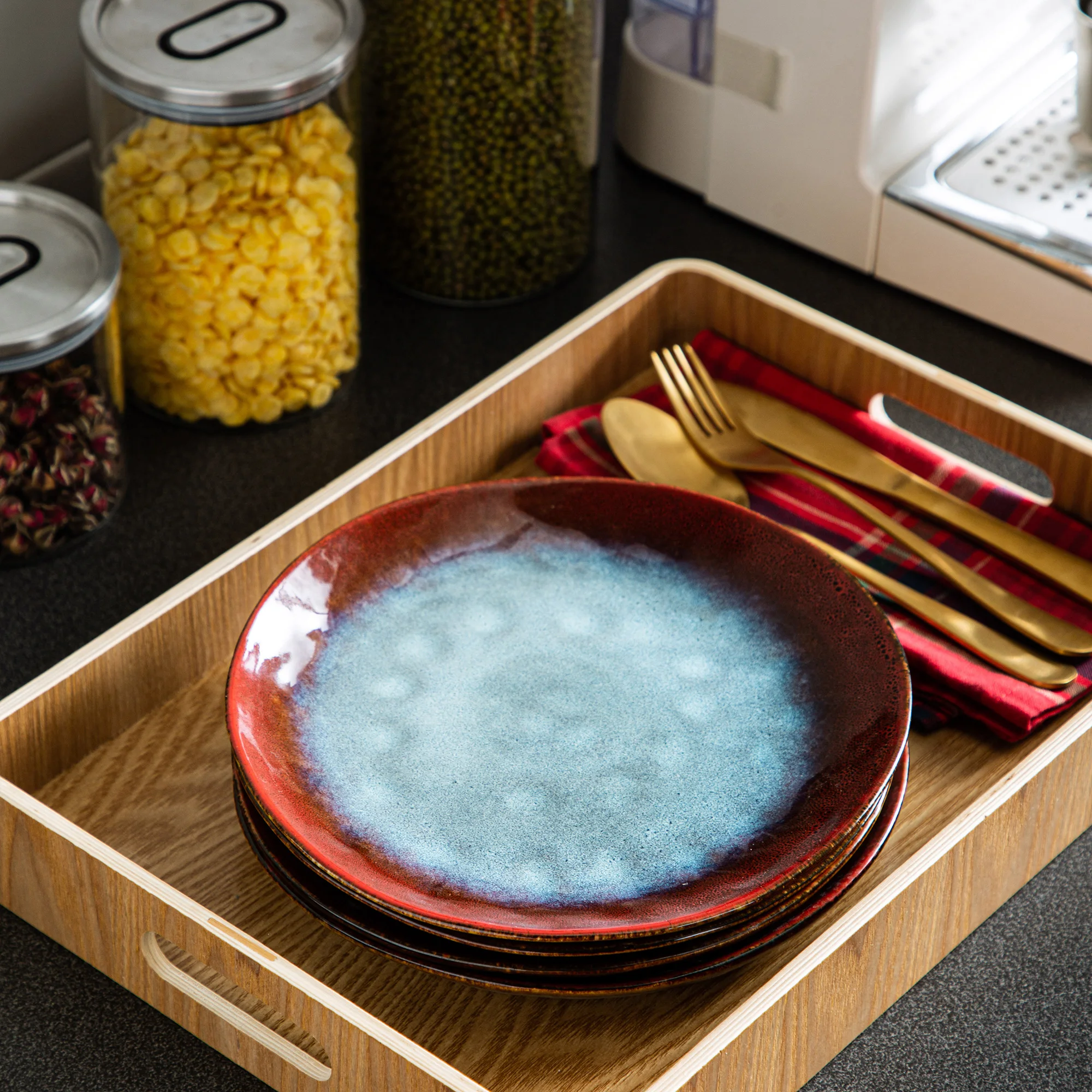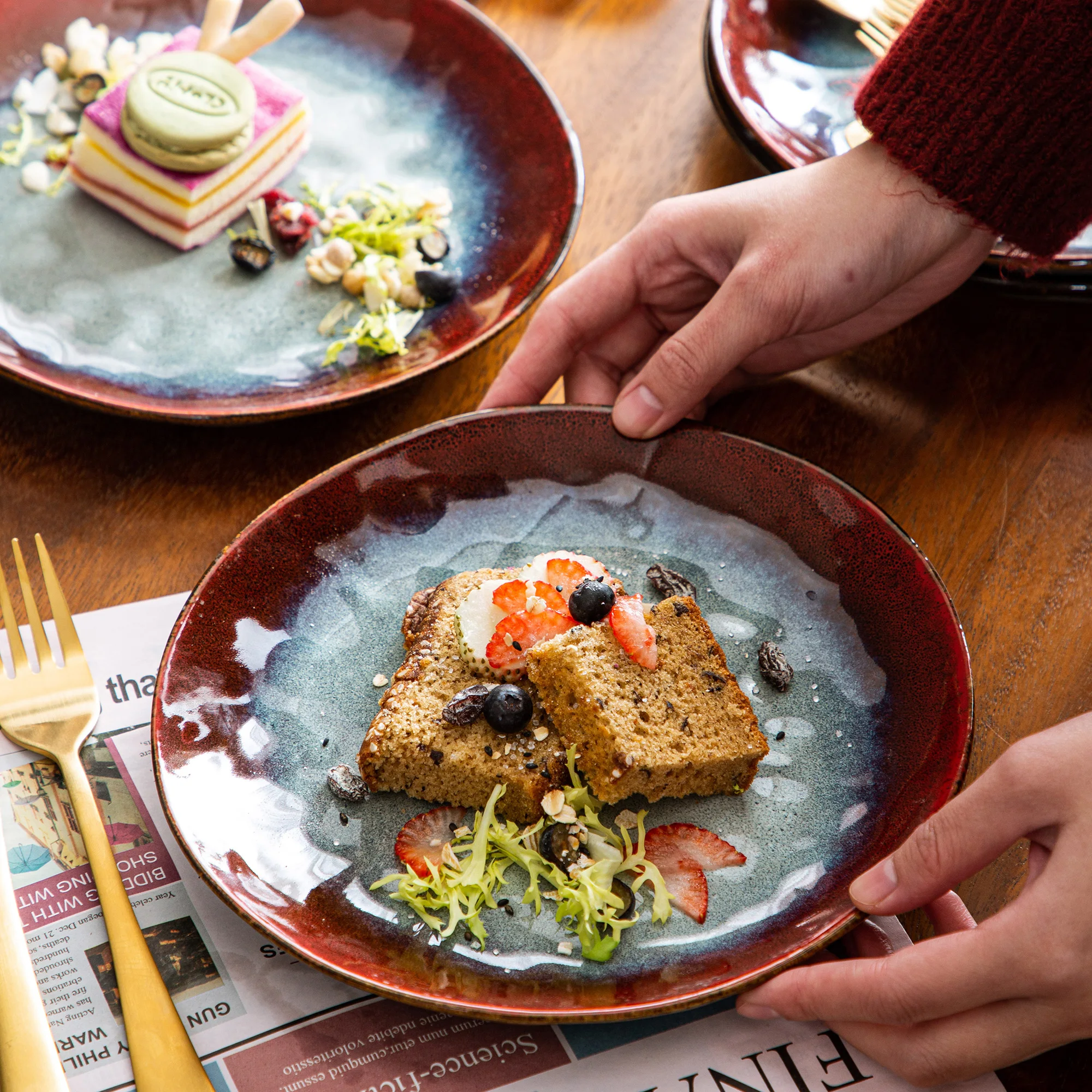 Vancasso Starry Red 4/8/12 Darabos Desszert Tányér Vintage Megjelenés Kerámia Kemence Cseréje Máz Saláta/Gyümölcs/Snack/Süteménykészlet