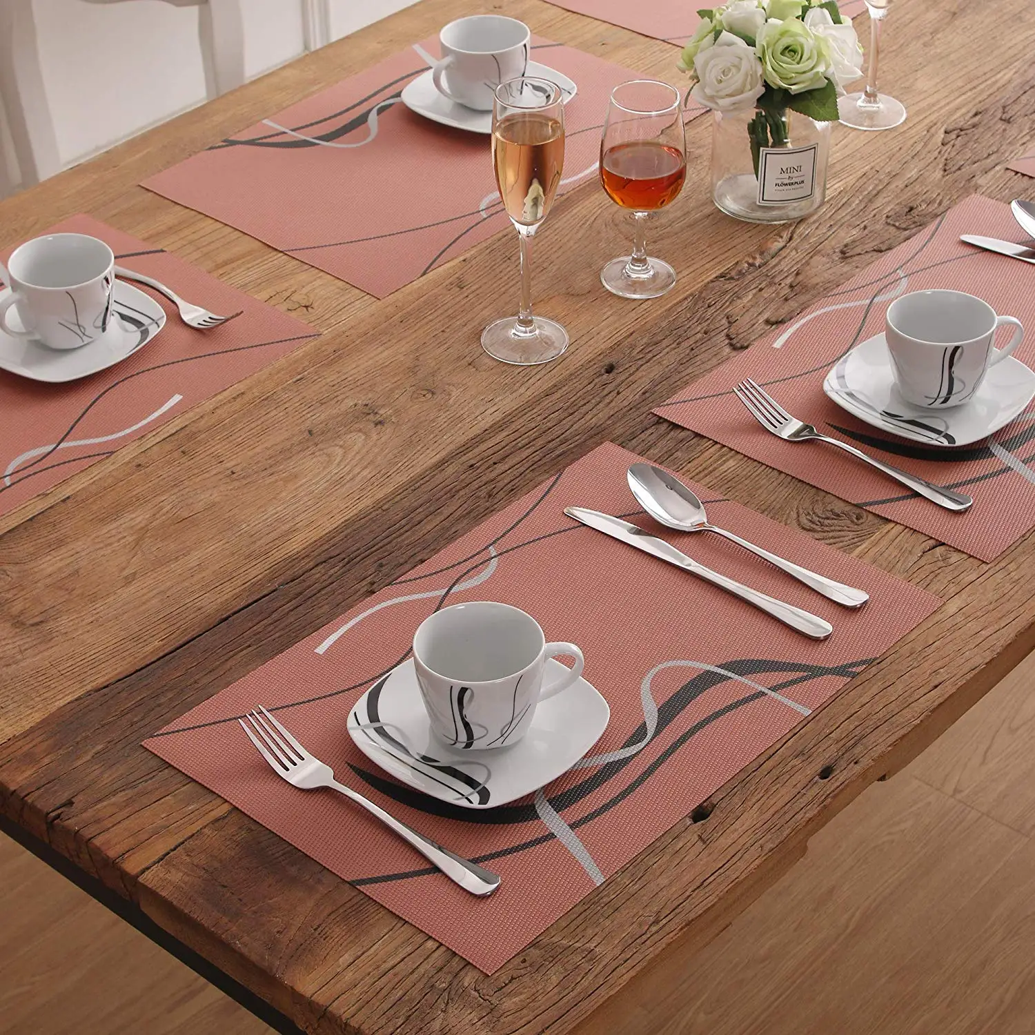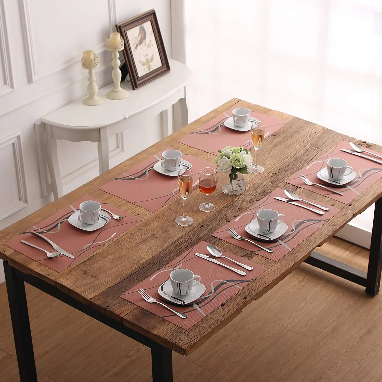 Veweet Fiona 12 Darabos Hőálló Pvc Placemats Set Étkező Alátét Asztal Szőnyegek Vinilfolt Ellenálló, Könnyen Tisztítható 45Cmx30Cm
