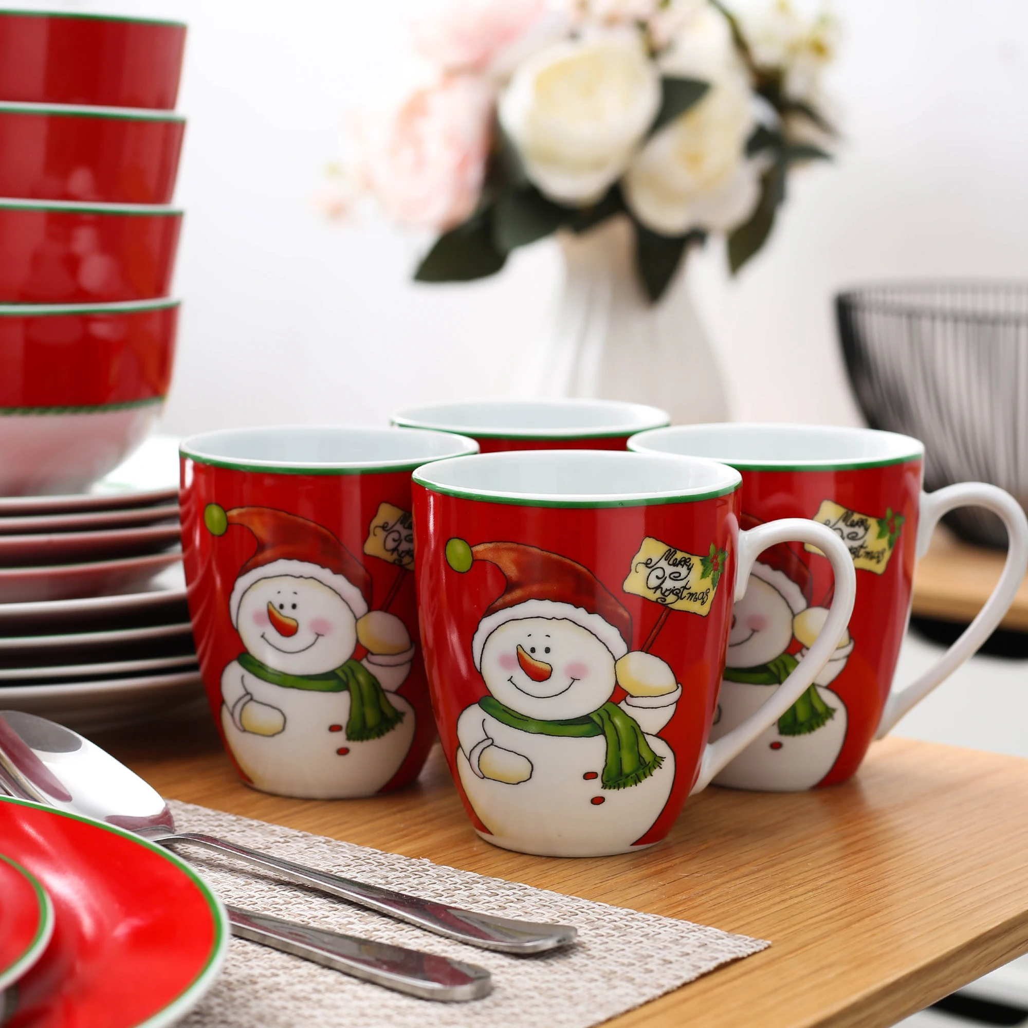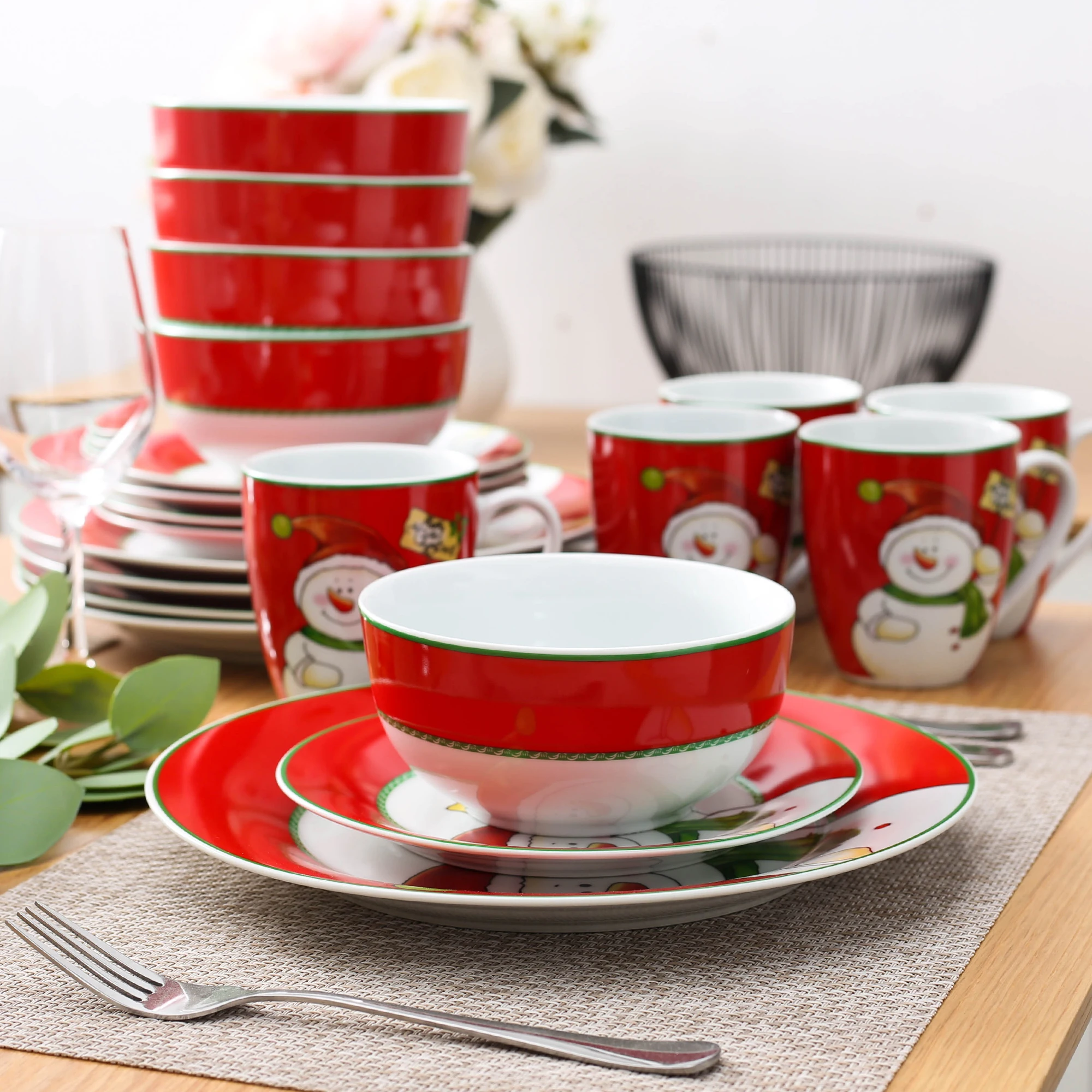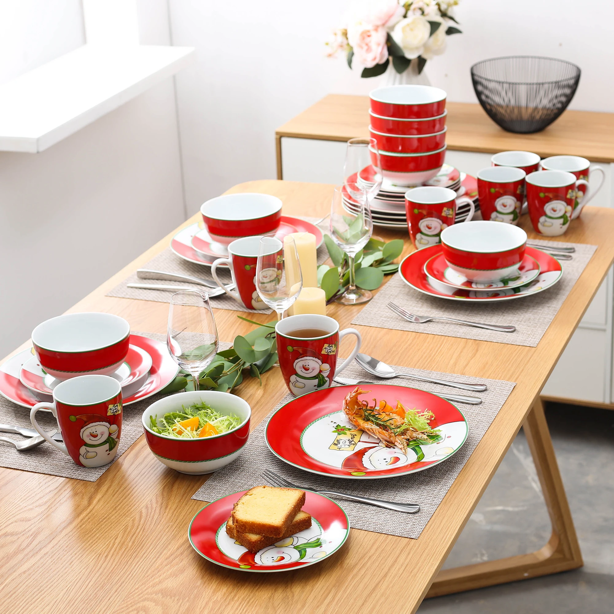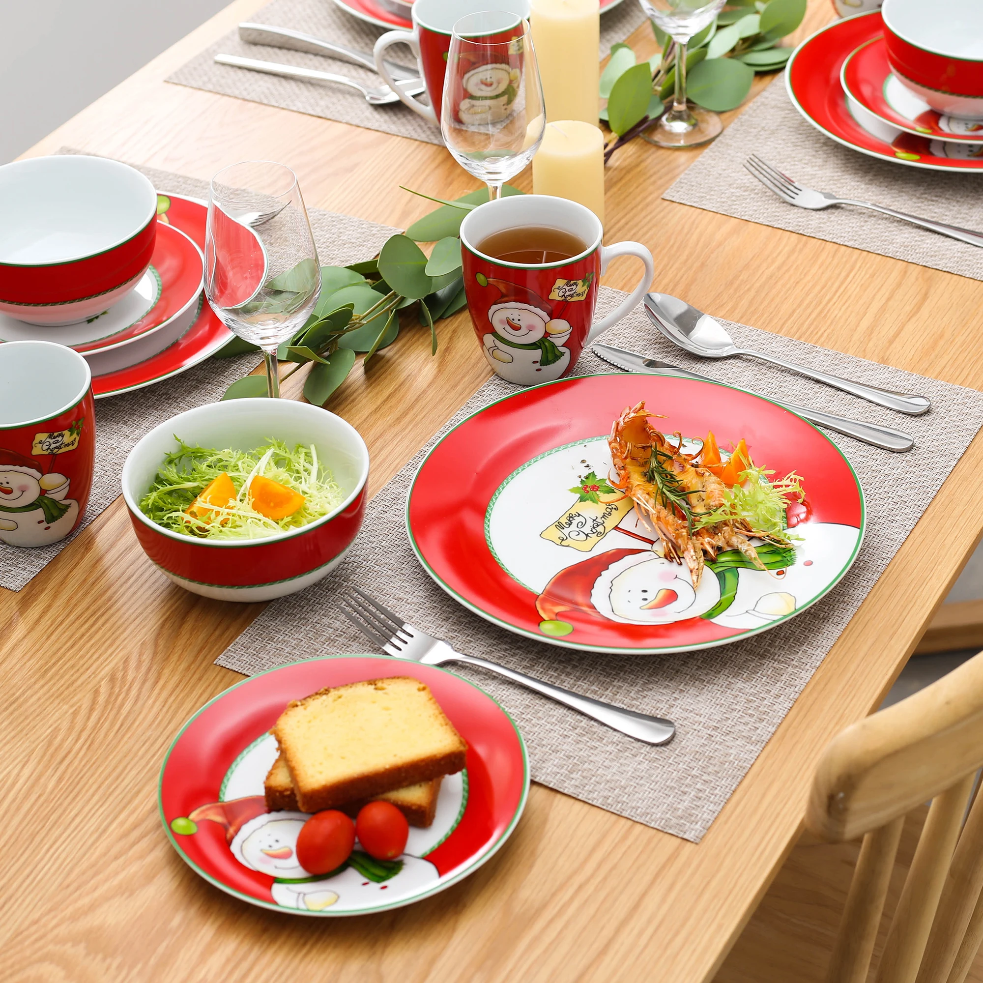 Veweet Karácsonyi Hóember 16/32 Darabos Porcelán Vacsora Edénykészlet Desszert Tányérral, Tál, Bögre Szolgáltatás 4/8 Fős Személy Számára