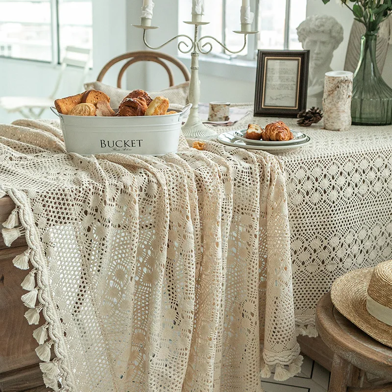 Vintage Vidéki Minimalista Terítő Üreges Szövés Északi Téglalap Alakú Szövet Könnyű Luxus Csipke Asztal