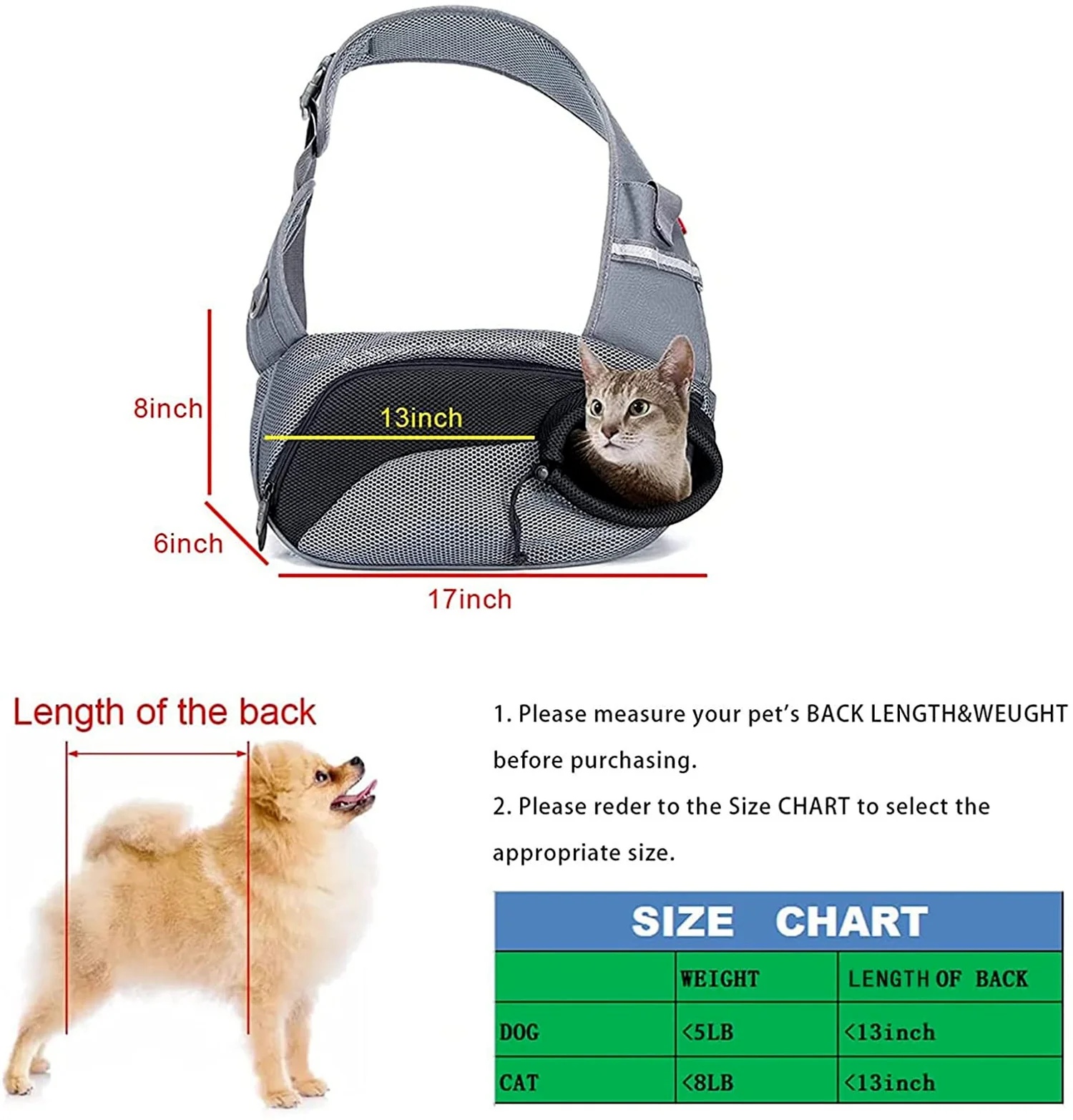 Wakytu Pet Sling Hordozó Kölyökkutya -Zsák 5 Font Macskákhoz Kutyák Állítható Heveder Szellőztetése Válltáskák Kültéri Háziállatokkal