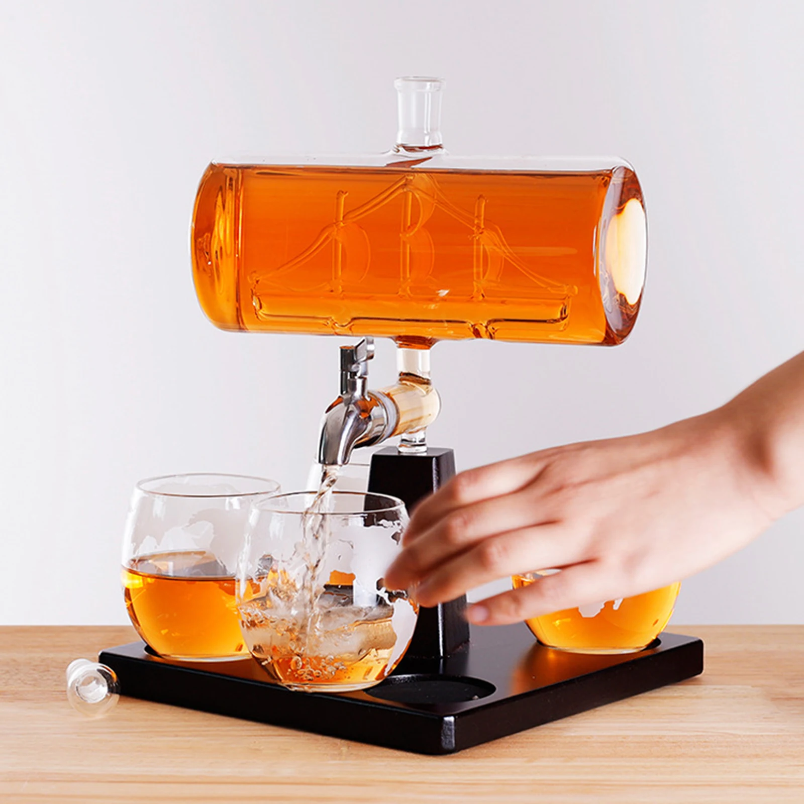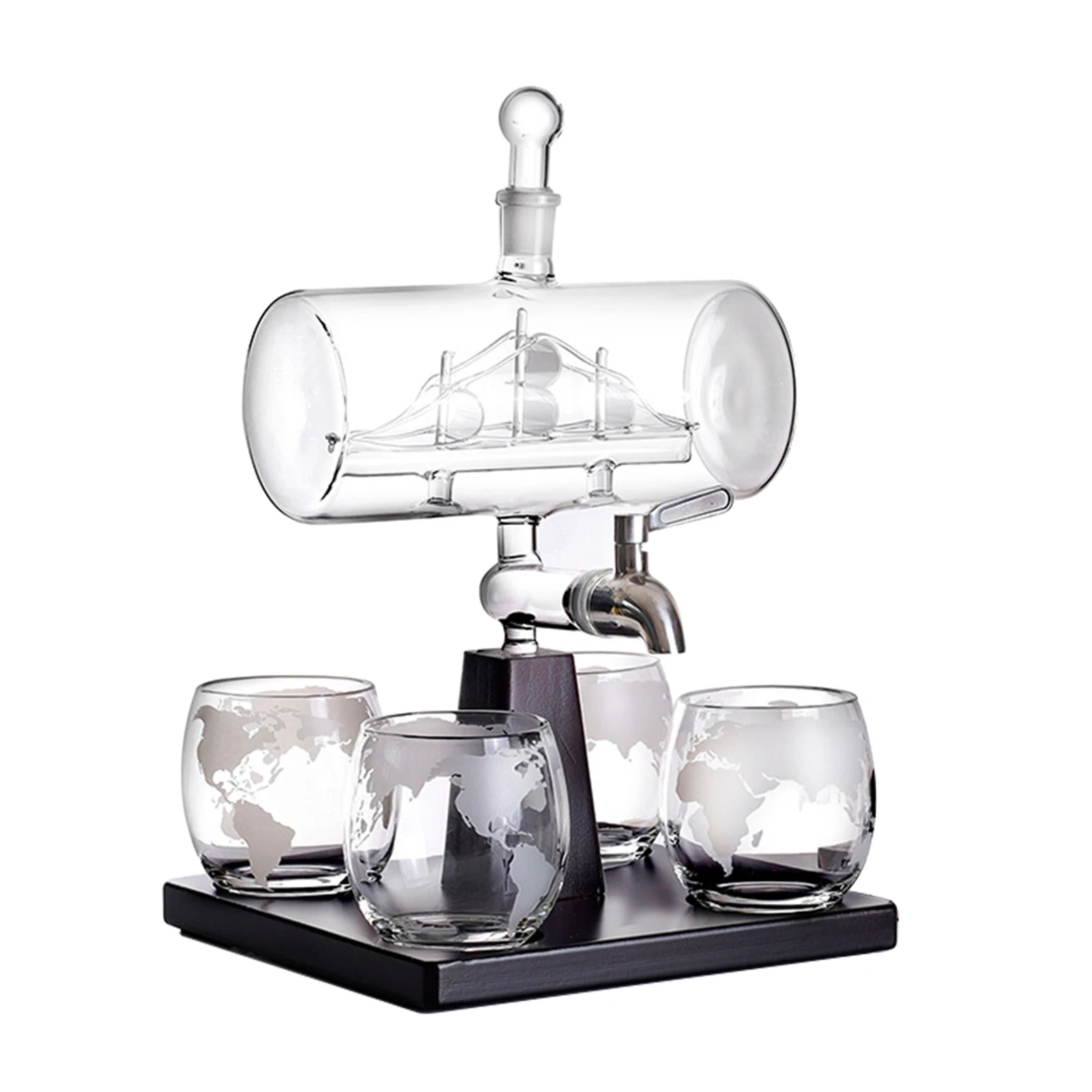 Whisky Dekanter Készlet 1000 Ml -Es Whisky Dekanter 4 Whisky Pohár Borosüveg Ital Adagoló Üveg Dekanter