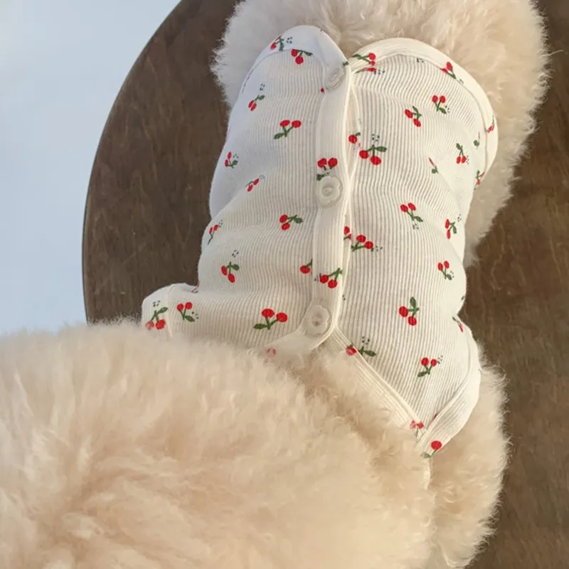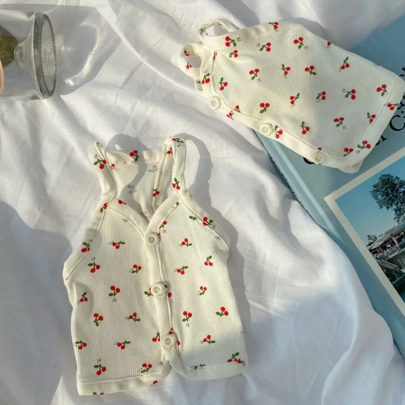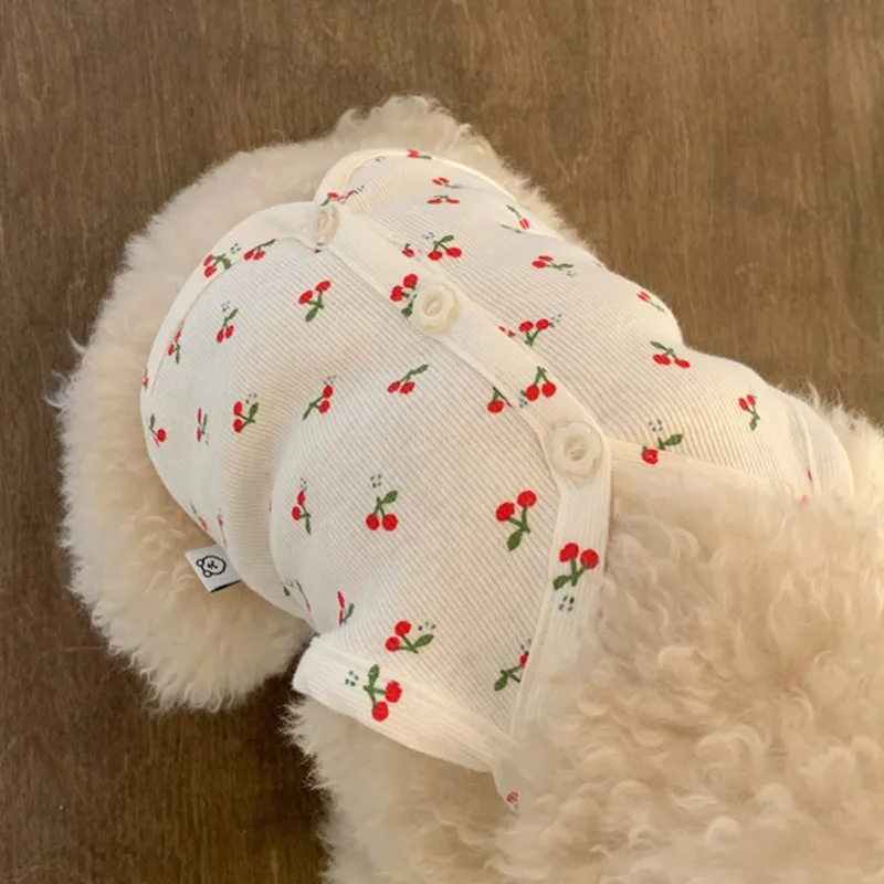 Xa-Xxl Pet Mellény Cseresznye Nyomtatás Fehér Kölyökkutya Szilárd Színű Ruhák Pet Pullovers Pet Dog Ruhák