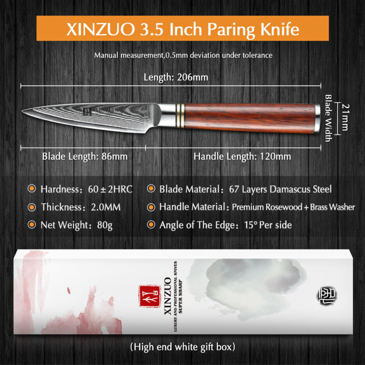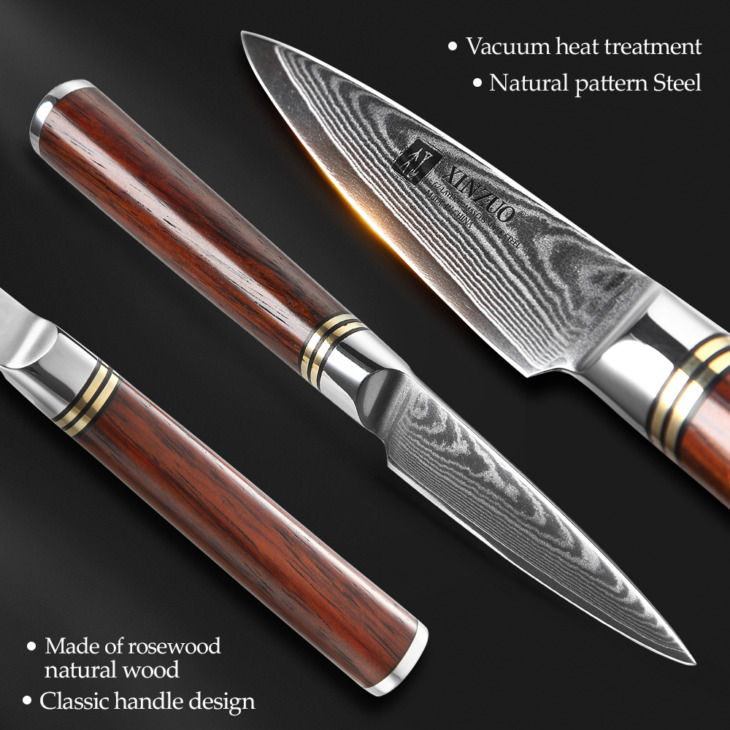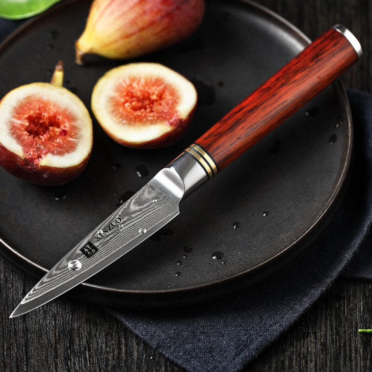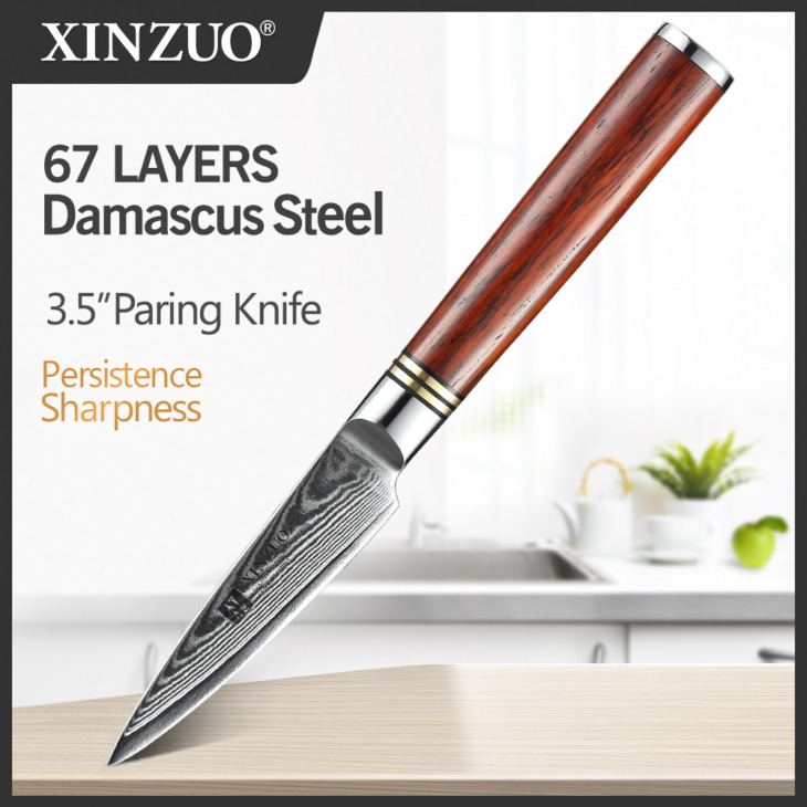 Xinzuo 3,5 „Hüvelykes Gyümölcs/Paring/Hámozás/Hámozó Kés Damaszkusz Acél Szuper Penge Kitek Knivers Ultra Éles Rózsafa Fogantyúval
