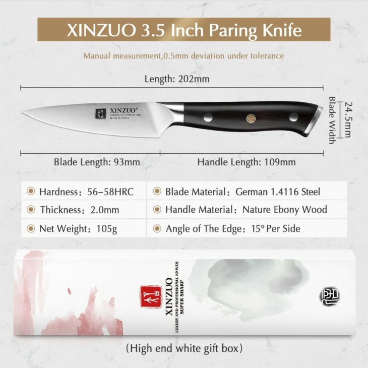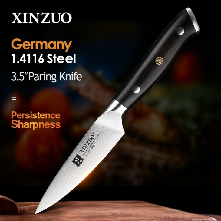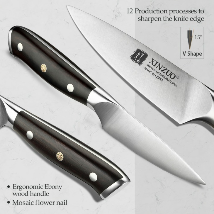 Xinzuo 3,5 ” Japán Stílusú Hasznos Kés Ergonómikus Ébenfogantyú Német 1.4116 Rozsdamentes Acél Hámozó Gyümölcs Konyhai Szakács Kés