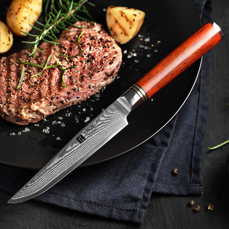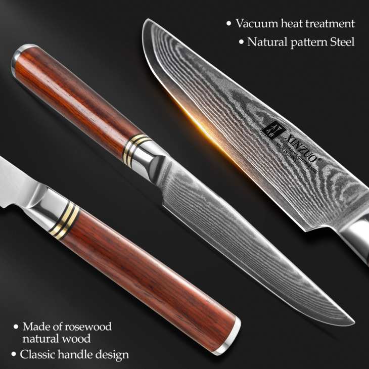 Xinzuo 5 ” Hüvelyk Pro Steak Kés Magas Széntartalmú Japán Vg10 Damascus Acél Konyhai Kés Penge Sharp Knivers Kitchen Tools Ajándék
