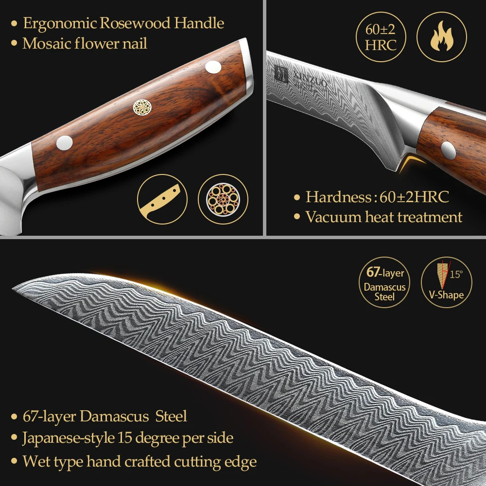 Xinzuo 6 „Csontos Halkés Damaszkusz Acél Tartós Éles Konyhai Kések Csonthús Sushi Kés Gyümölcs Zöldségek Vágószerszám