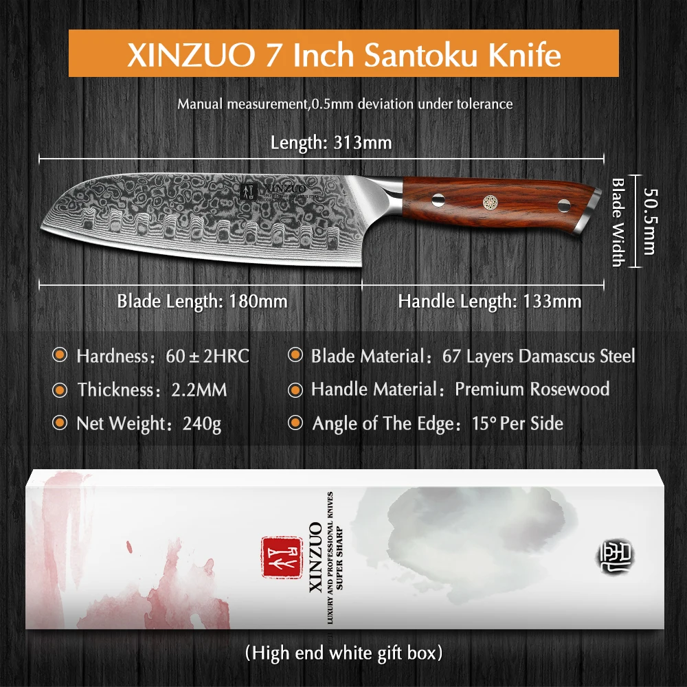Xinzuo 7 ‘ Hüvelykes Japán Santoku Chef Knife 67 Rétegek Damascus Acél Konyha Kés Cleaver Professzionális Konyhai Főzési Eszközök