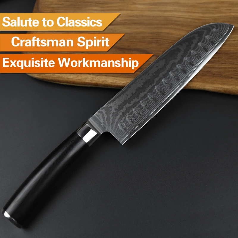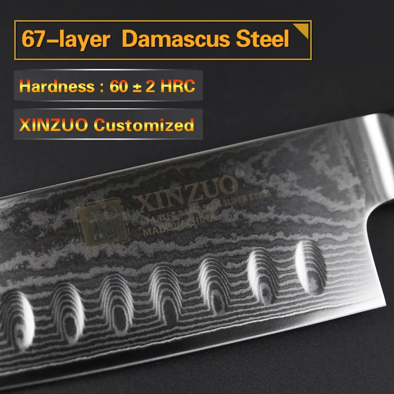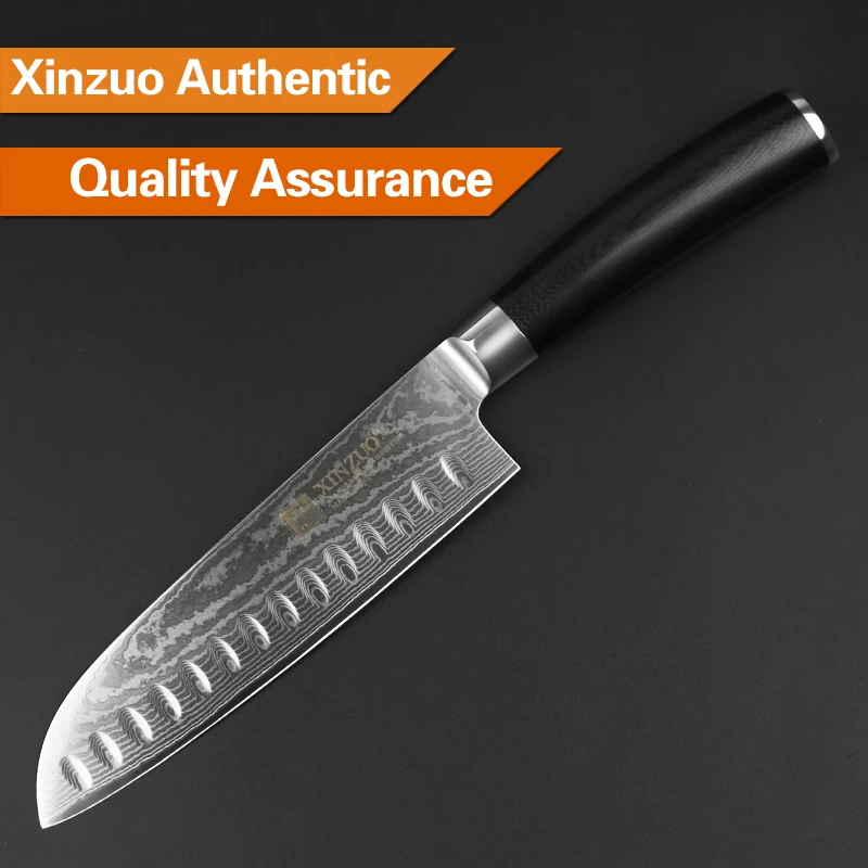 Xinzuo 7 „Hüvelykes Santoku Kés Japán Vg10 Damascus Acél G10 Hangok Pro Konyhai Kések Cleaver Húskés