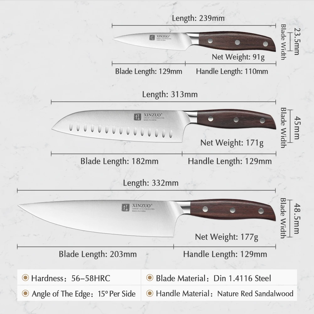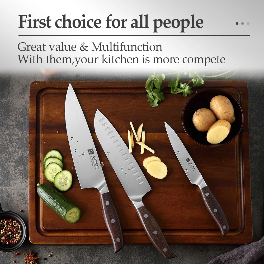 Xinzuo Konyhai Szerszámok 3 Db Konyhai Késkészlet Segédprogram Séf Satoku Kés Német 1.4116 Rozsdamentes Acél Borotva Éles Főző Szerszámok