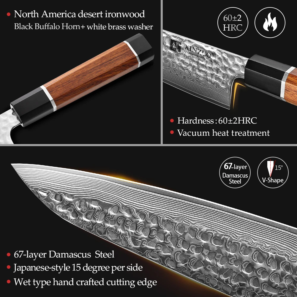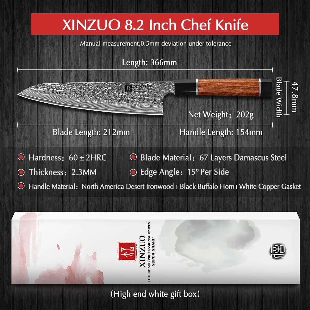 Xinzuo Professional 8.2 „Damascus Steel Chef Kés Csúcsminőségű Japán Stílusú Konyha Gyutou Knivers Sharp Cutter Kiváló Fogantyú