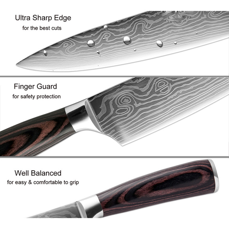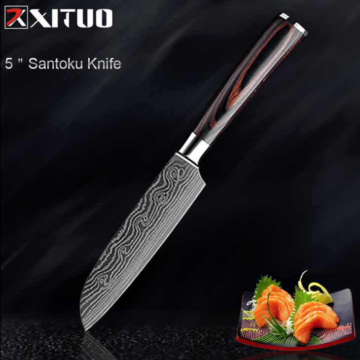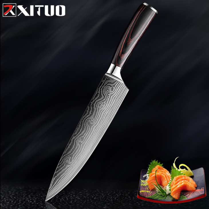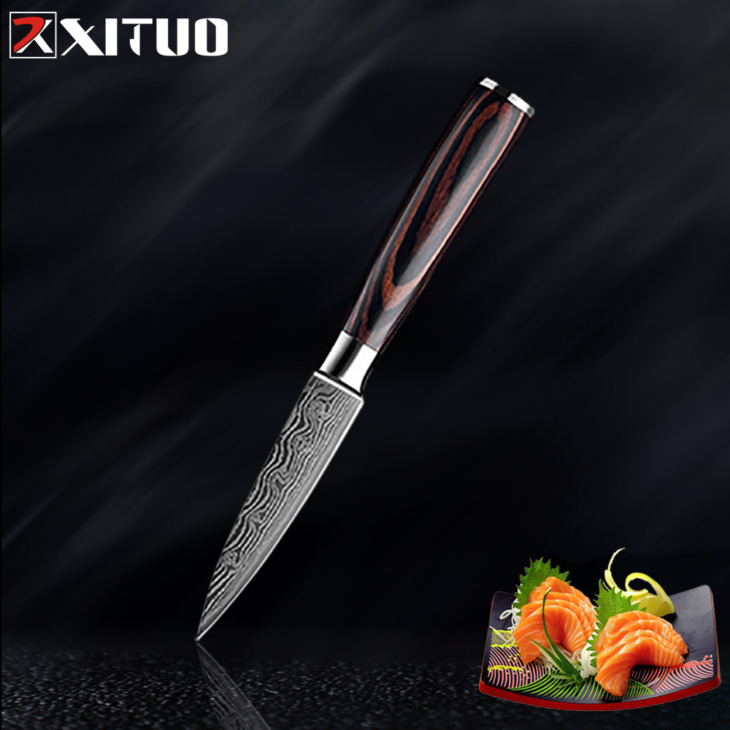 Xituo 3Pcs Messenset Konyhai Főző Kés Szerszámok 8 „5” 3.5 „Pakka Wood Damascus Acél Japán Séf Cleaver Utility Paring Knivers
