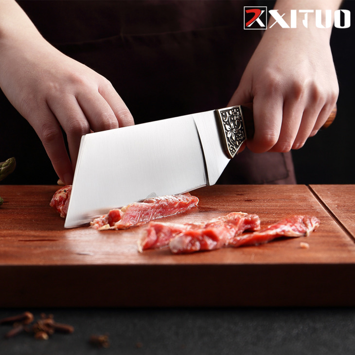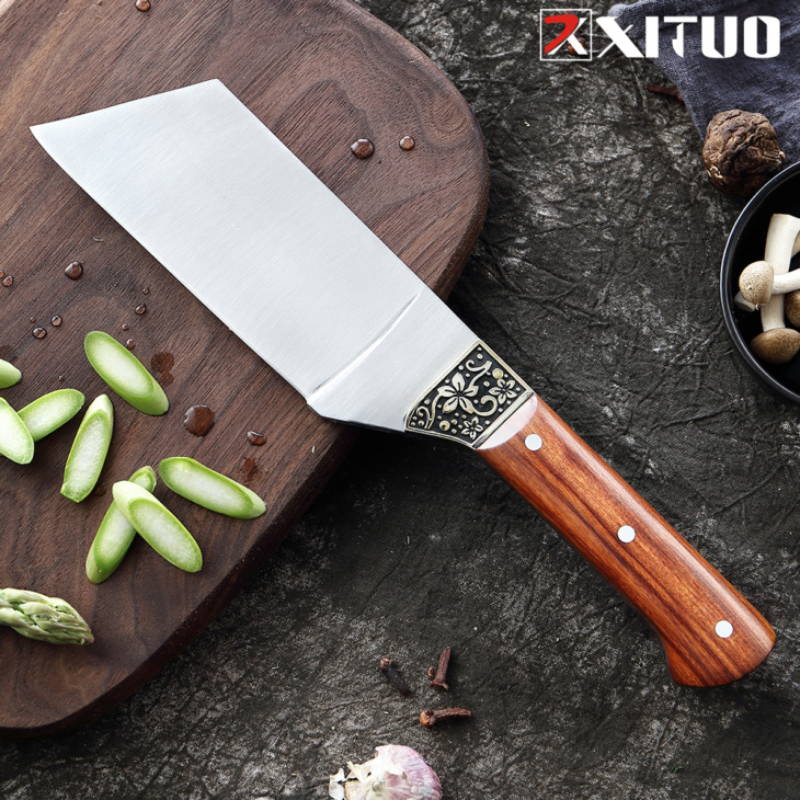 Xituo 440C Rozsdamentes Acél Prémium Séf Kés Durian Knife Cleaver Hús Gyümölcs Konyhai Kés Rózsafa Fogantyú Főző Szerszám