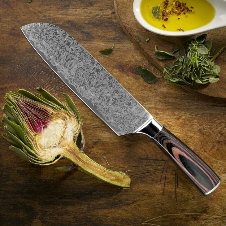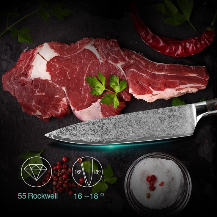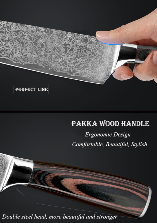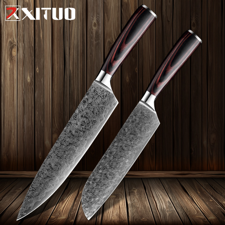 Xituo Éles Konyhai Késkészletek 2 Damascus Acélmintás Japán Séf Kések 8 „7” Hüvelykes Cleaver Santoku Szeletelő Közmű Kések