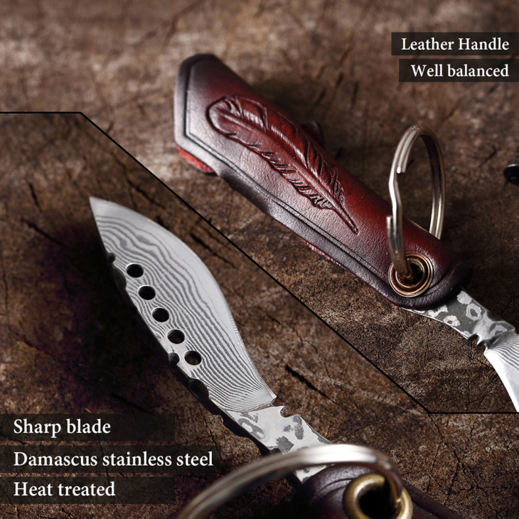 Xituo Gyümölcskés Damaszkusz Összecsukható Kés Bőr Fogantyú Konyha Séf Kés Mini Borotva Éles Kültéri Hordozható Kulccsal Zsebkés