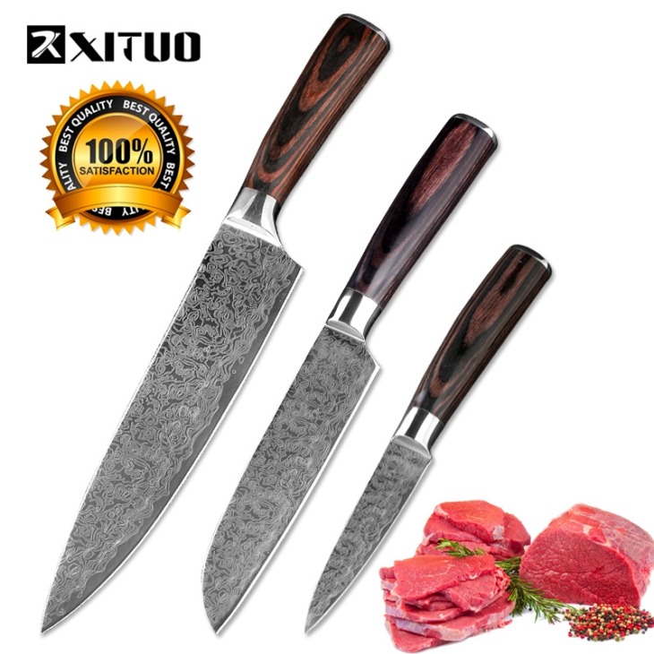 Xituo Magas 8. Fokozatú „5” 3,5 „Kés 3Db Pakka Fa Szépségminta Japán Séf Cleaver Paring Kések Főzési Eszköz Legjobb Családi Ajándék
