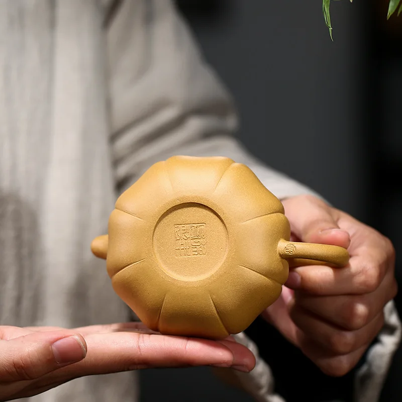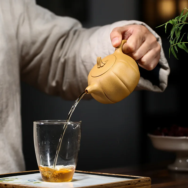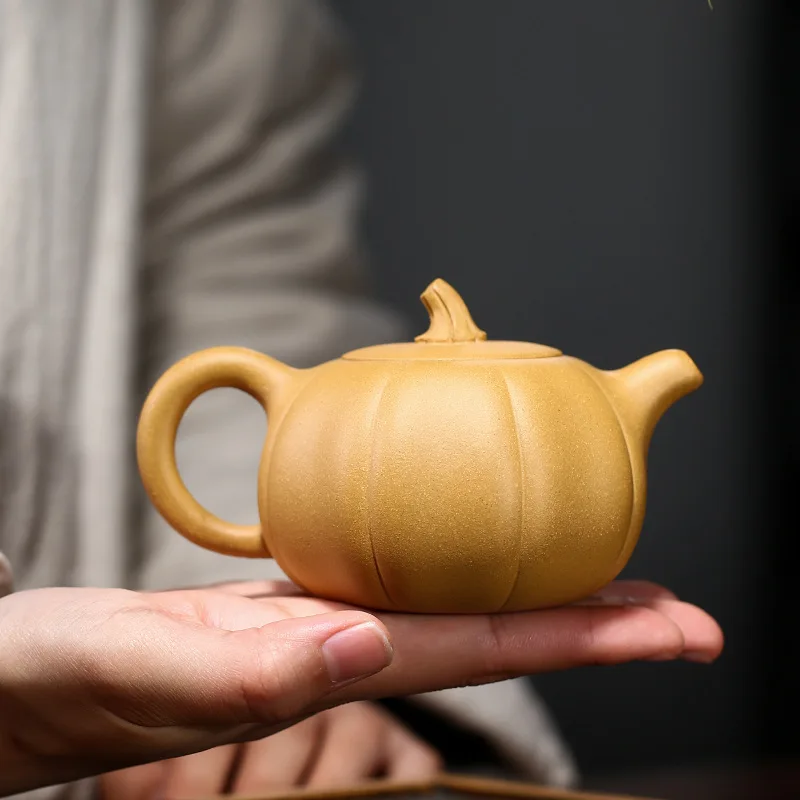 Yixing Lila Agyag Edény Érc Arany Metszet Sár Tök Kézzel Készített Teáskanna 240 Ml Otthoni Tea Szett Új