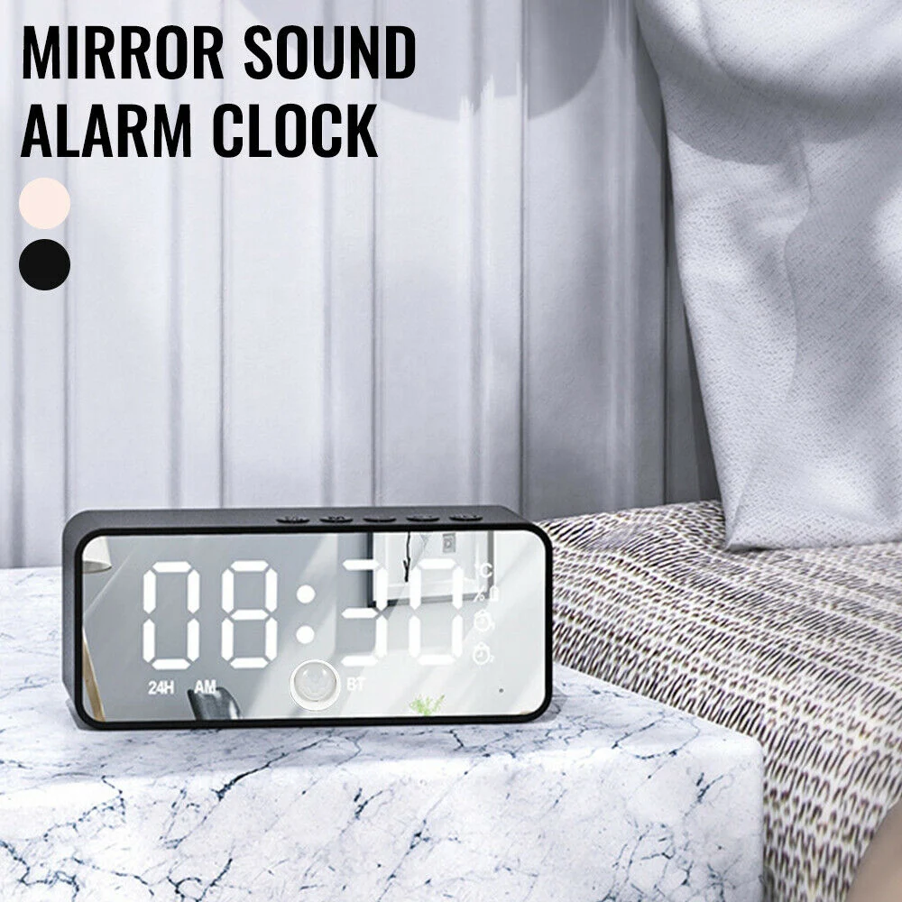 Zene Led Digitális Ébresztőóra Hőmérsékleti Dátum Display Asztal Tükör Órák Otthoni Dekoráció Hangvezérlés