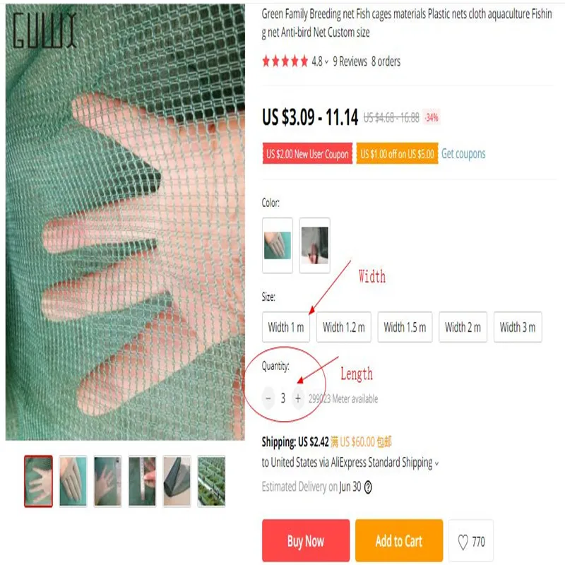 Zöld Családi Tenyésztés Nettó Halketrec Anyagok Anyagok Műanyag Hálók Szövet Akvakultúra Horgászat Nettó Madár Net Egyedi Méret