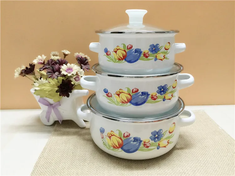 Zománc Főző Rakott Készlet Leves Edénykészlet Kis Orchideák Pörkölt Edény Kombinációja