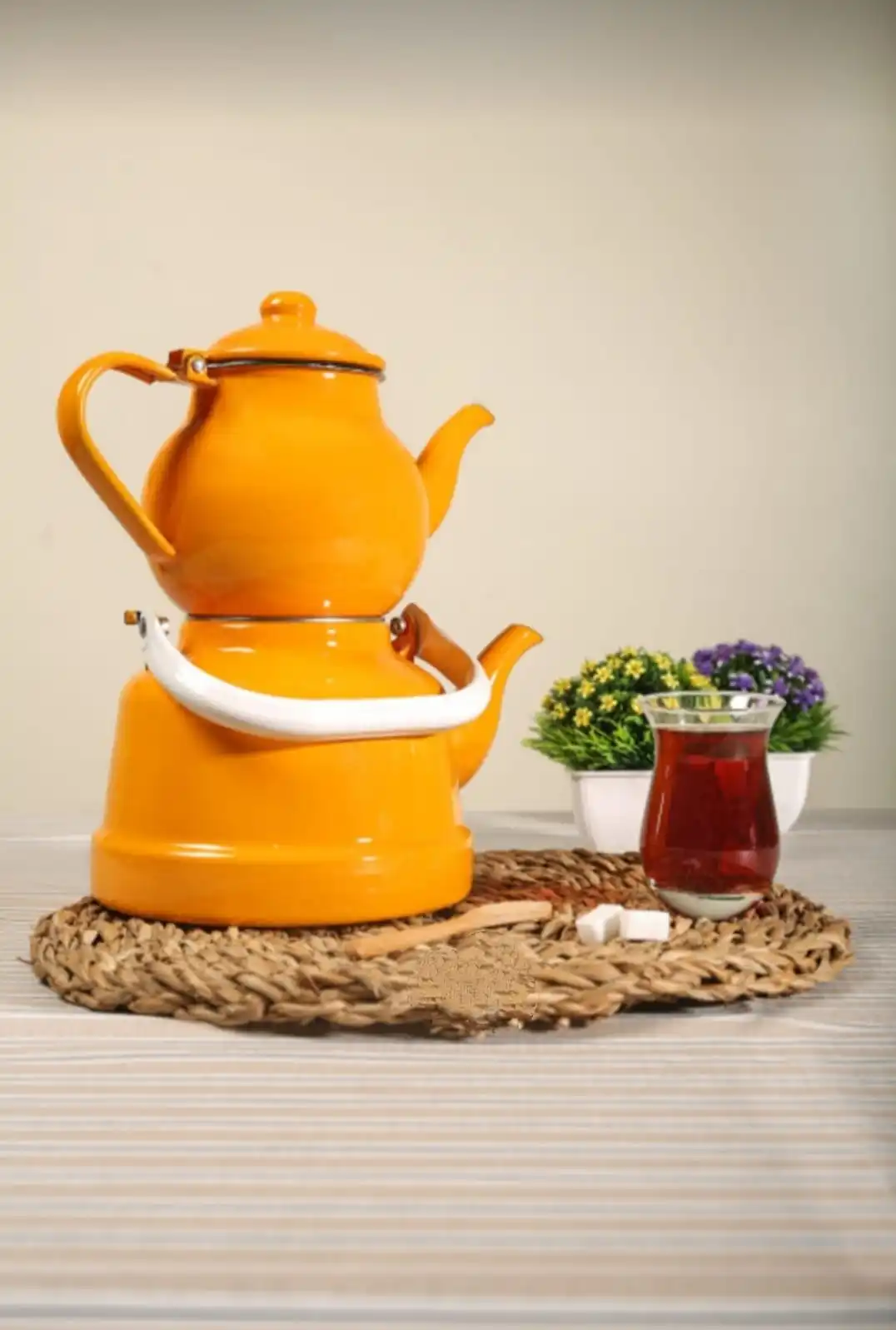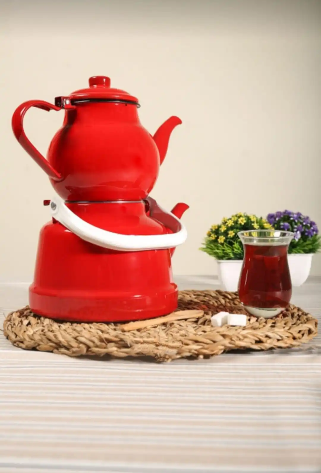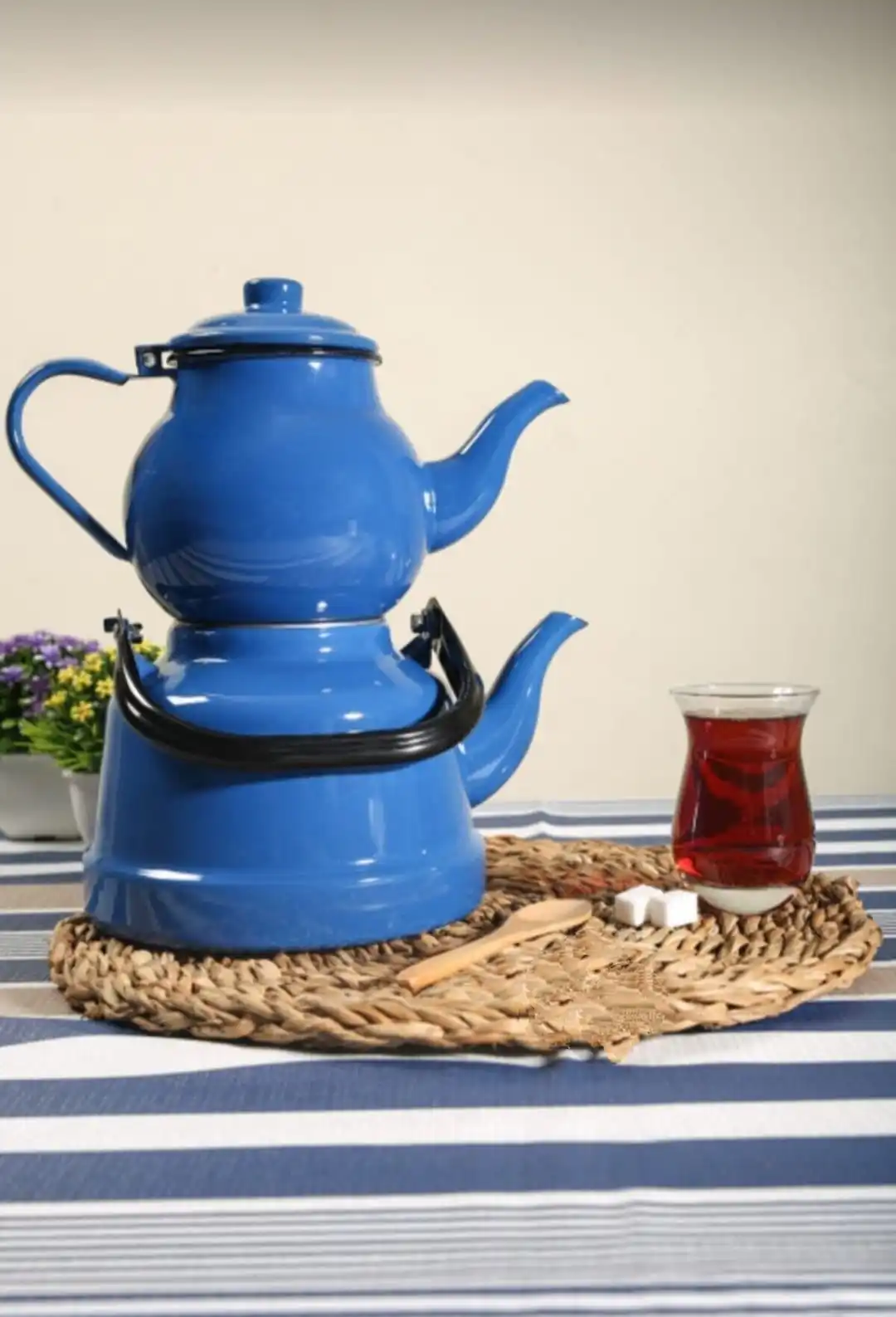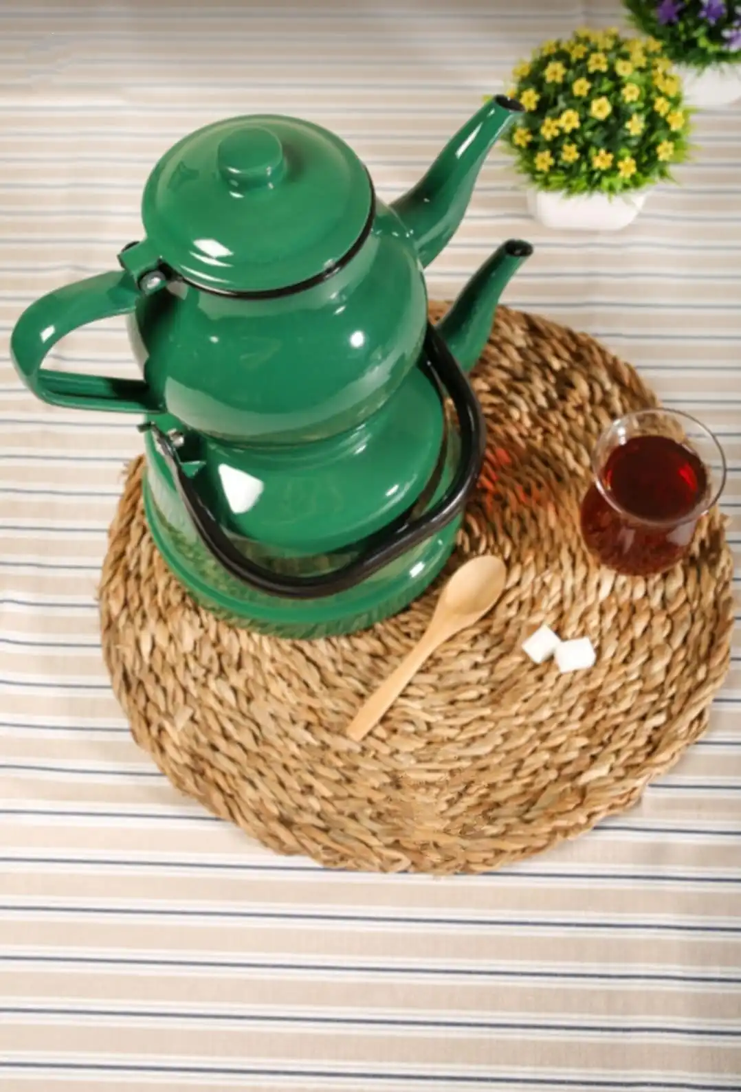 Zománc Nosztalgikus Közepes Méretű Teáskanna Készlet Zöld Kék Piros Színű Műanyag Fogantyú Konyhai Dekoráció Ajándék Hiteles